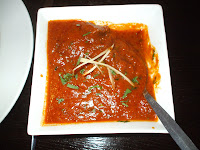 Hector ordered the Spicy Green Lamb Shank Curry, a ‘Goan Green Lamb Shank Curry with Fresh Coriander and Green Chillis.’ The meal came with a fare sized piece of Lamb on a single large bone. That it was eaten with the aid of a fork only is testimony to the quality of the meat. The appearance was perfect, the texture great, it only lacked ‘that special taste’ to make it outrageously special.
