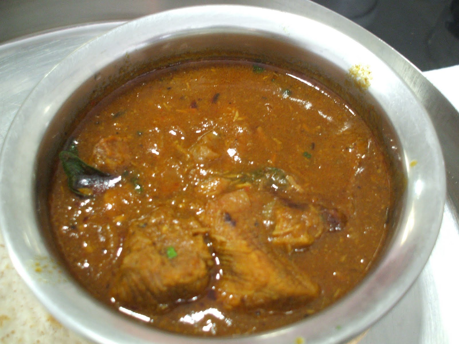 Hector asked the waiter what the difference was between the Lamb Chettinadu – Lamb Curry with Chettinadu Spices – and the Aattu Erachi Kozhambu- Lamb Curry made of special ground Chettinadu spices with a touch of pepper. I was told that the latter was a ‘stew’. The Lamb Chettinadu was chosen. This term was first encountered on the Specials Board at the Indian Mango in München. As is Blogged, this München Curry turned out to be one of the best I have ever tasted. Cue a culinary drum roll.