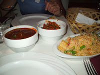 Hector ordered the Lamb Madras and noted that the Lamb was appreciably dearer than the Chicken. The sauce had never seen an Onion, it was nowhere as bad as a Greek made curry experienced in Zakynthos some years back which was meat in Bisto, but it was getting tow