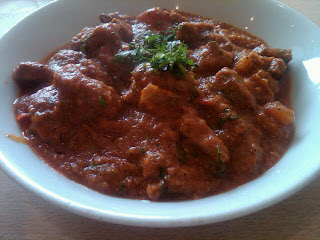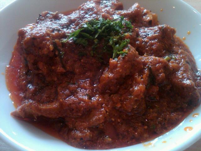 One instinctively can tell when something special has been presented. The on-the-bone version was distinctly oilier than the counterpart. The sauce was thick; the taste we collectively agreed was rich. This was a new taste experience. We tried to identify what, if anything, dominated the masala. In the end we just ate in silence appreciating that this indeed would be a new addition to our Curry Heute circuit.