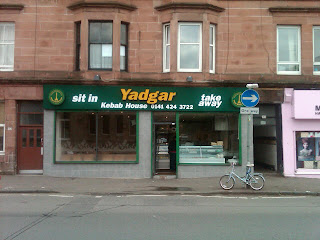This week’s ritual Saturday Curry Heute entry is another tip-off from Neil. Marg and Hector arrived early at the Yadgar Kebab House (148 Calder St, Govanhill, Glasgow G42 7QP) which is just along from the closed swimming baths and opposite the library. My first reaction was – Oh no, it’s just another kebab take-away outlet – of which every city in Europe has too many. When the menu was presented it appeared that Curry was not going to be the main feature, pizzas and kebabs were inevitable inclusions. The engravings on the large glass frontage assured us otherwise: Traditional Pakistani Food. So no masquerade as Indian here like the many Bangladeshi and Indo-Pak outlets across the city.