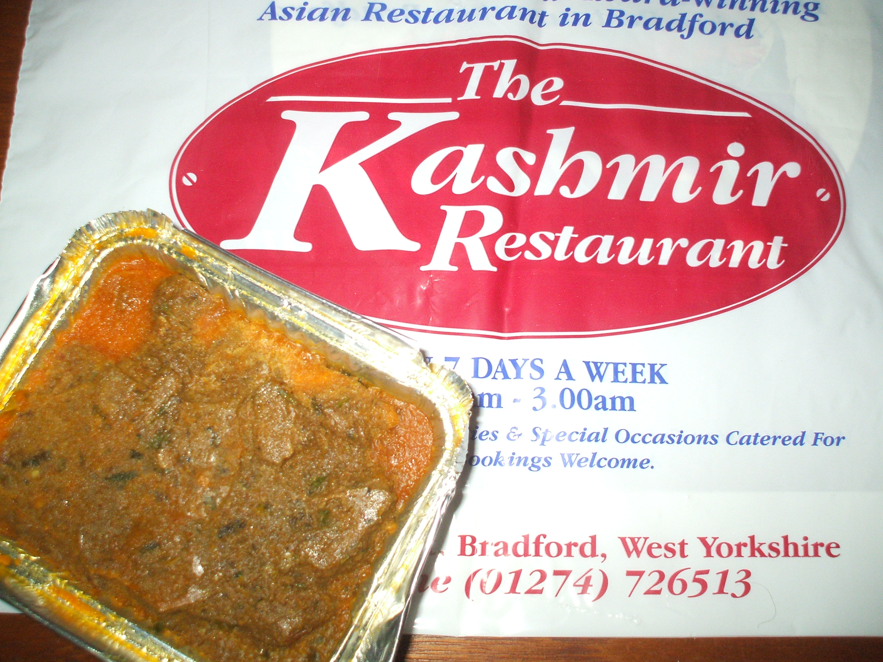 The Kashmir Restaurant (27 Morely St, Bradford, BD7 1AG) is certainly the Curry venue I have visited most in Bradford – it is always open. The Curry-Heute was driven back to Scotland a couple of weeks ago and has been ‘maturing’ in the freezer along with the accompanying four Chapattis.