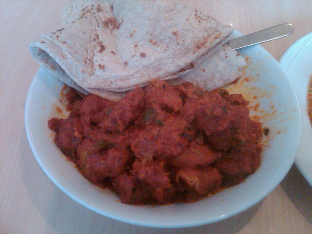Hector’s Curry came first: the white bowl contained a mountain of Hot-Dry Goshat Karahi. The off-the-bones came and then the remaining normal portions of on-the-bone. Howard and Tracey are now converts to the world of bones-on.