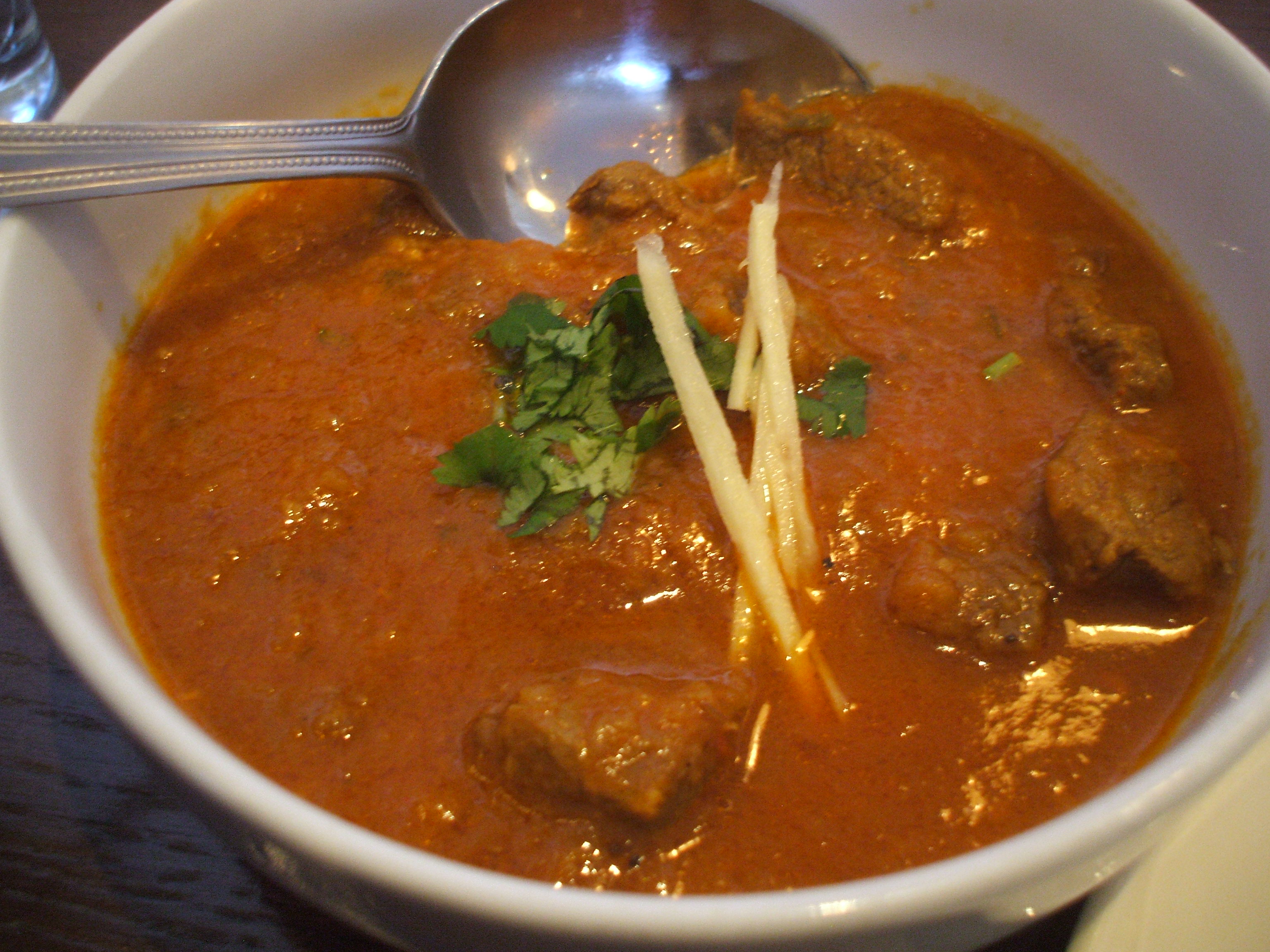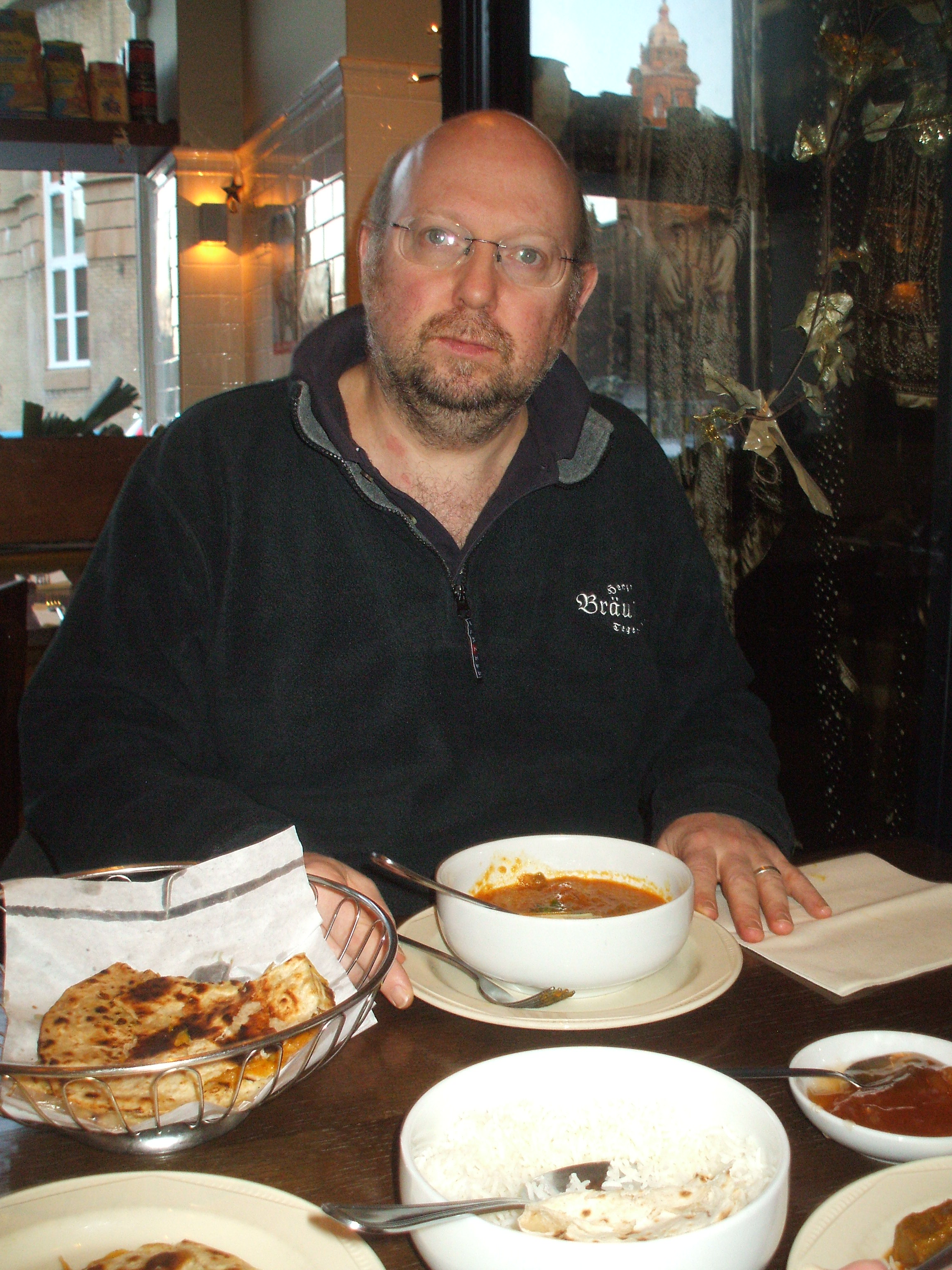 Marg’s dish arrived without the Roti so there was a momentary hiatus as she considered her next move. Then a puffed up bread was presented, magnificent. The dish was Bradford-dry and Marg found the combination of Meat and Raita to be pleasant. The Roti was popped and the meal devoured. Hot, spicy and filling – were Marg’s well chosen words of appreciation.