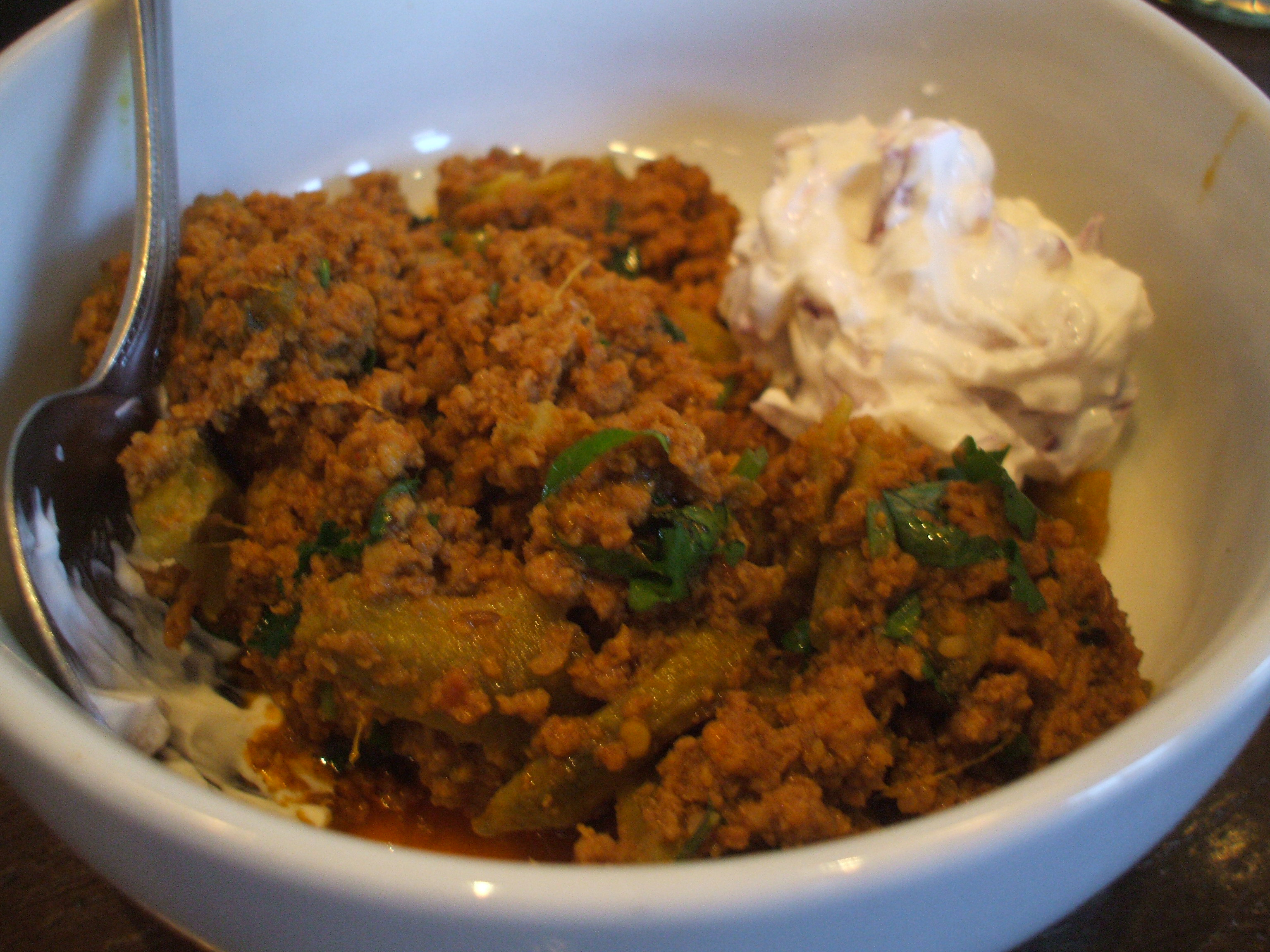 A single sheet menu was presented as is the style in the Wee Curry Shops. There were only two Lamb dishes to choose from. Mother went for the Lamb Curry which described itself as a simple straightforward dish and Boiled Rice. Hector was attracted by the Pan Fried Lamb with Chickpeas and Mushrooms – alas after the order was given I was informed this was not available and so I kept Mother company. A Radish filled Paratha could not be resisted. Marg chose a brave dish – Keema Lamb with Raita and a Roti.