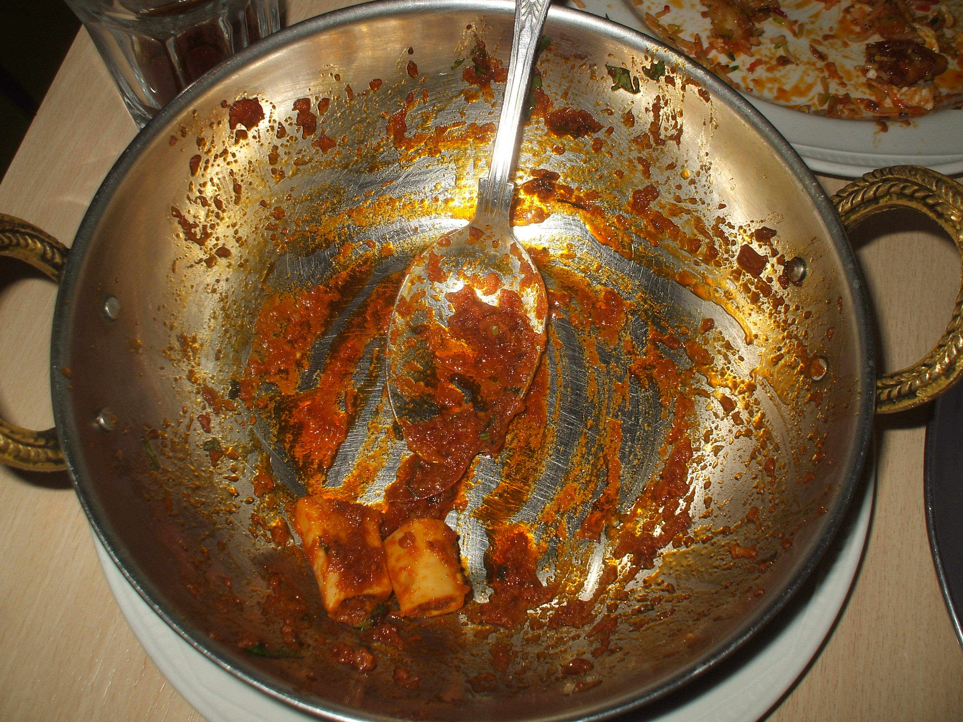 I had not asked for the meal to be prepared ‘hot’ it usually is, and again this was perfection. Having had no food all day the appetite was there to be satisfied. This quantity is an absolute treat: one has the normal plateful and one can see more waiting. No spoiling the appetite with Starters – this is about maximising the pleasure that this sensational Curry brings.
