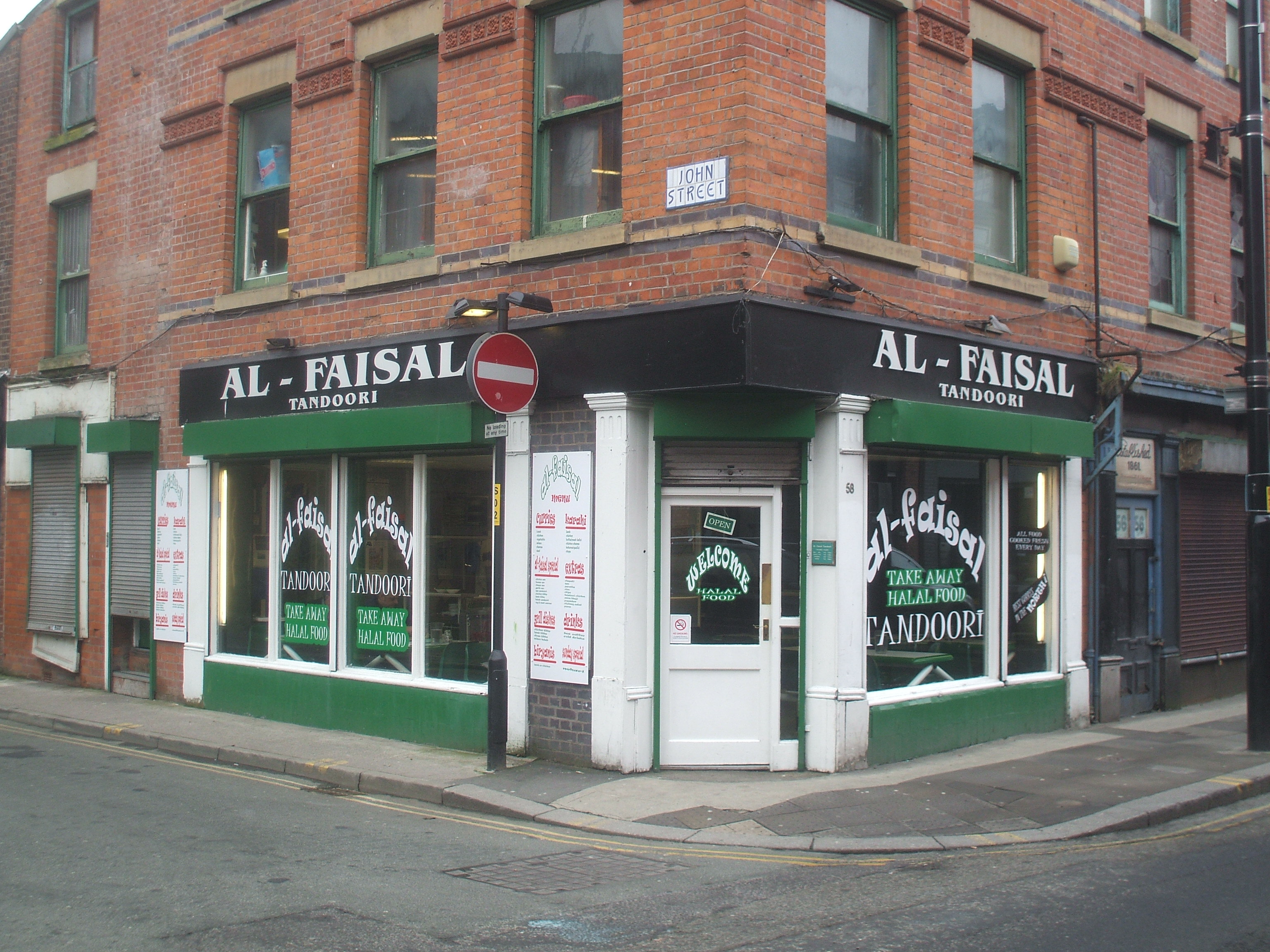 Kabana (Turner St, Manchester M4 1FP) was the first choice of all in the research. There was no sign of life here at all. It was reportedly closed on a Saturday, sadly it is. Al-Faisal Tandoori (58 Thomas St, Manchester, M4 1EG) was a dozen paces away and was clearly open and doing good business. Al-Faisal is a classic cafe set up: seating a maximum of about 20+ at six tables fixed to the floor and all the main activity in a kitchen up a stair on the far corner from the door. Lamb Karahi was on offer, this would be a fine moment, my first Manchester Curry-Heute.
