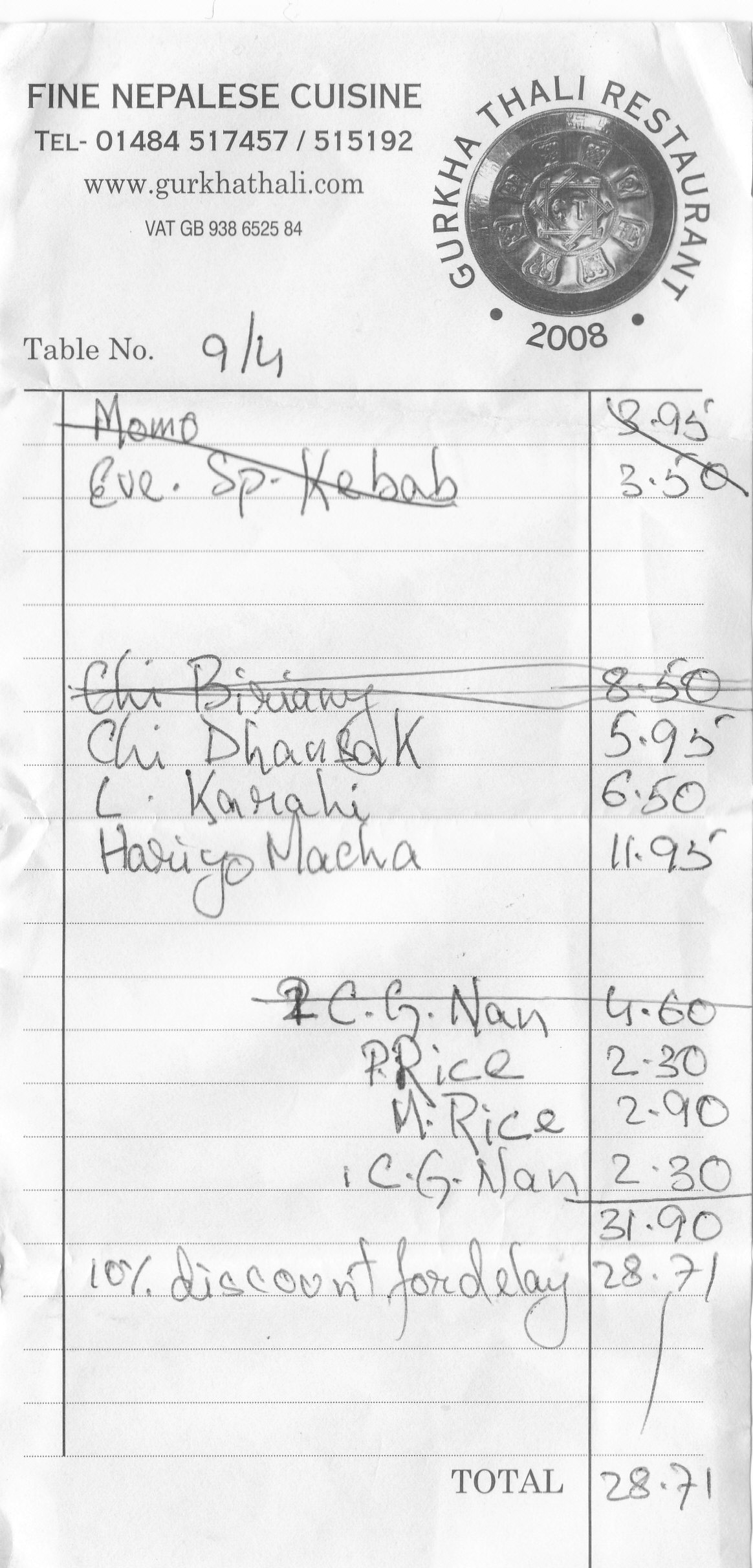 Those of you who are still awake will realise we were promised Free Starters, Robin had walked, and there had been many complaints about the delay in serving. ‘Half price’ said the waiter as he presented us with this very bill. This was deemed to be a fair amount.