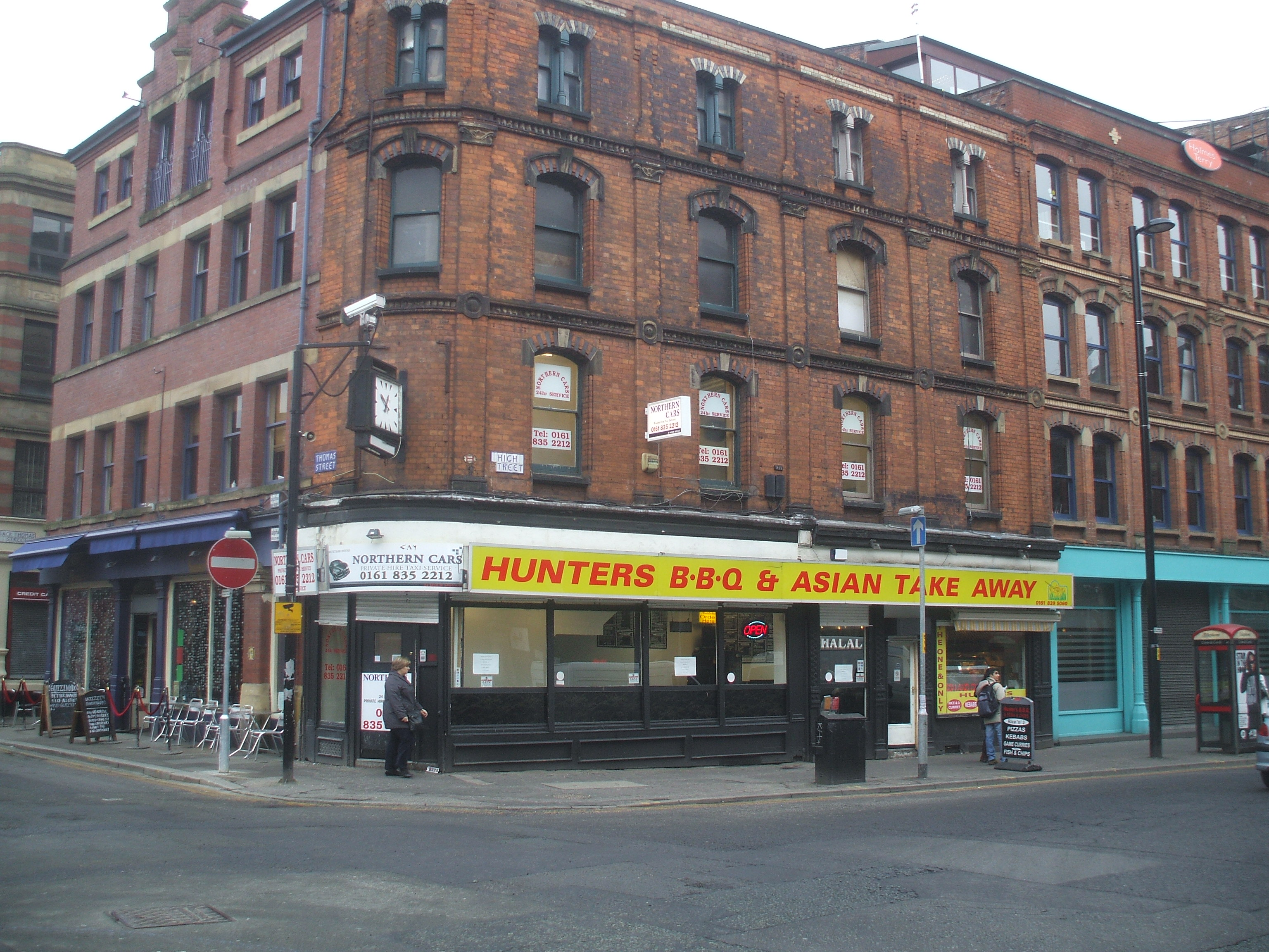 Leaving Bar Fringe I found myself on Thomas St outside Yadgar Cafe (71 Thomas St, Manchester, MN4 1ES), and not High Street as many sources say. It was closed. This would be an ironic choice of first stop, maybe tomorrow. The map in hand was difficult to see in the dimly lit streets. The lack of scale is always frustrating, things tend to be closer on the ground than Hector senses from the map. Hunter’s BBQ (94 High St, Manchester, M4 1EF) was the only place open at midnight. It was on the list but did not tempt me in. I decided that an early night would lead to a raging appetite by noon the next day. No way would the breakfast at the Merchant’s Hotel be a consideration.