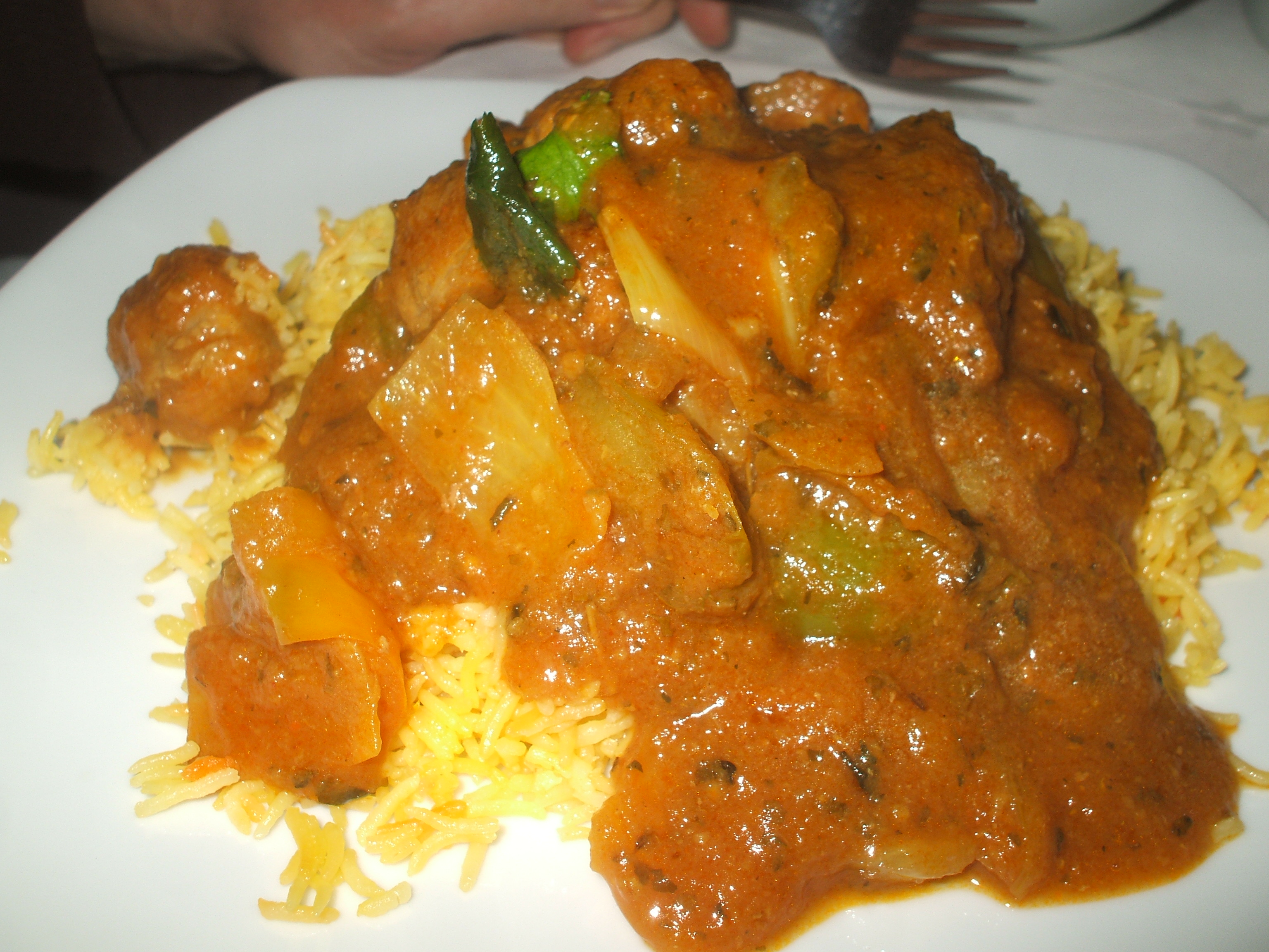 The – Fish – was reminiscent of Prawn. Poor man’s Lobster – is how other sources describe it. I played – spot the Mushroom – with the Rice. The dish was not unpleasant, it was just bland.