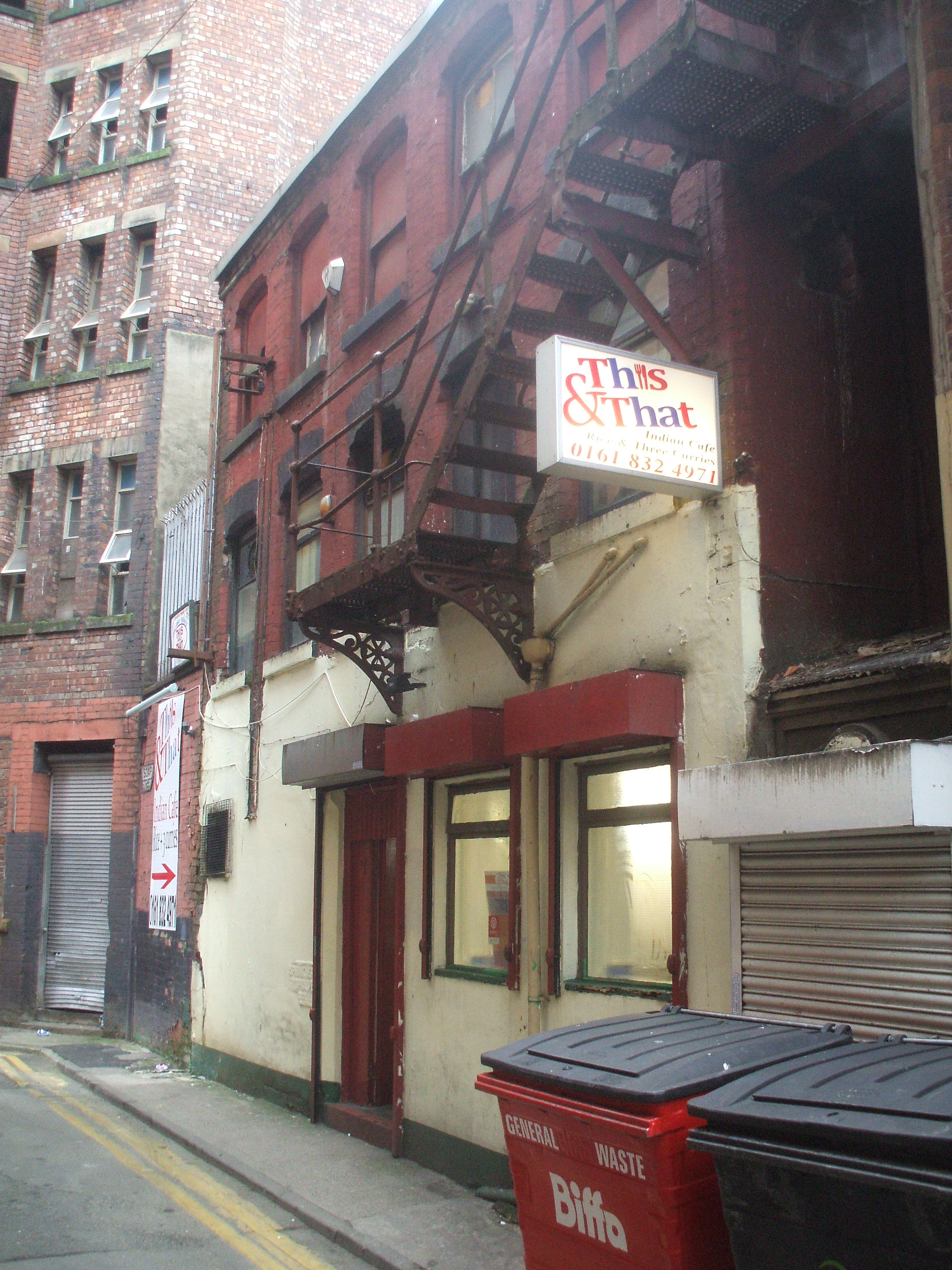 Hector’s research had revealed that This & That (3 Soap St, Manchester, M4 1EW) was another must-visit Curry Cafe. Whilst I continued my brisk walk to hopefully digest Curry-Heute #1, I decided to hunt down Soap St. and hopefully This & That. I was in the neighbourhood, this was not in doubt. Soap St never appeared, Turner St kept changing direction, what was High St doing here? With a geometric precision that another obsessive, Captain Queeg, would be proud of, Hector found Soap St. There was nothing there. I walked on. There was no hope in my heart, sorry, wrong city.