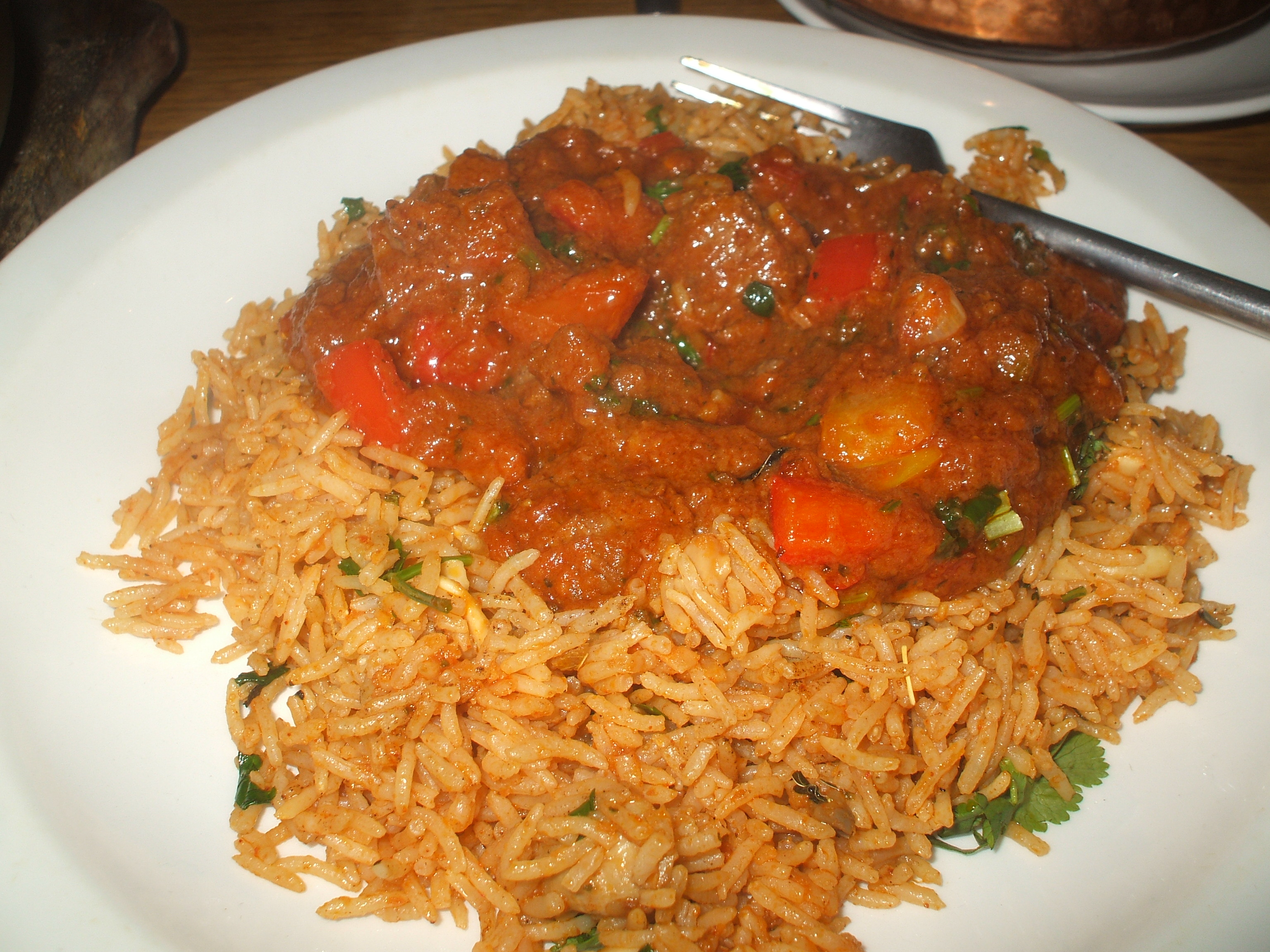 The waiter took me to the rear of the restaurant which certainly was Tardis-like: much bigger on the inside than it looked on the outside. I told him – time was the issue – and asked how quickly they could do me a Curry. He was confident that I could have anything I wished. Glancing at the menu I saw Lamb Karahi – this was agreed along with a Mushroom Rice.
