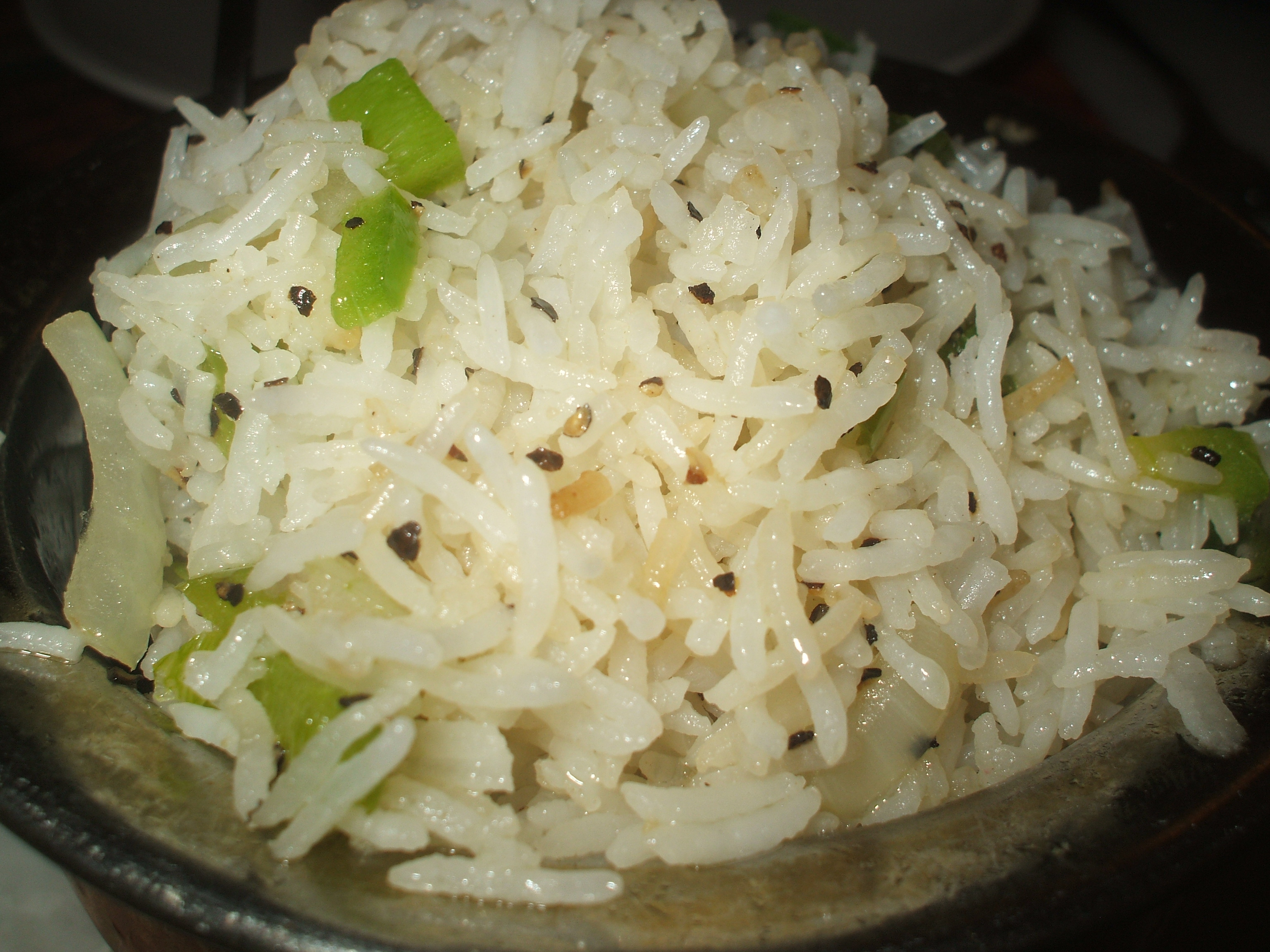 The mains arrived after a decent interval. The Karahi Gosht looked impressive, the Fish Karahi was heaped high. The Rice….. boiled Basmati with…..finely chopped Capsicum….why?