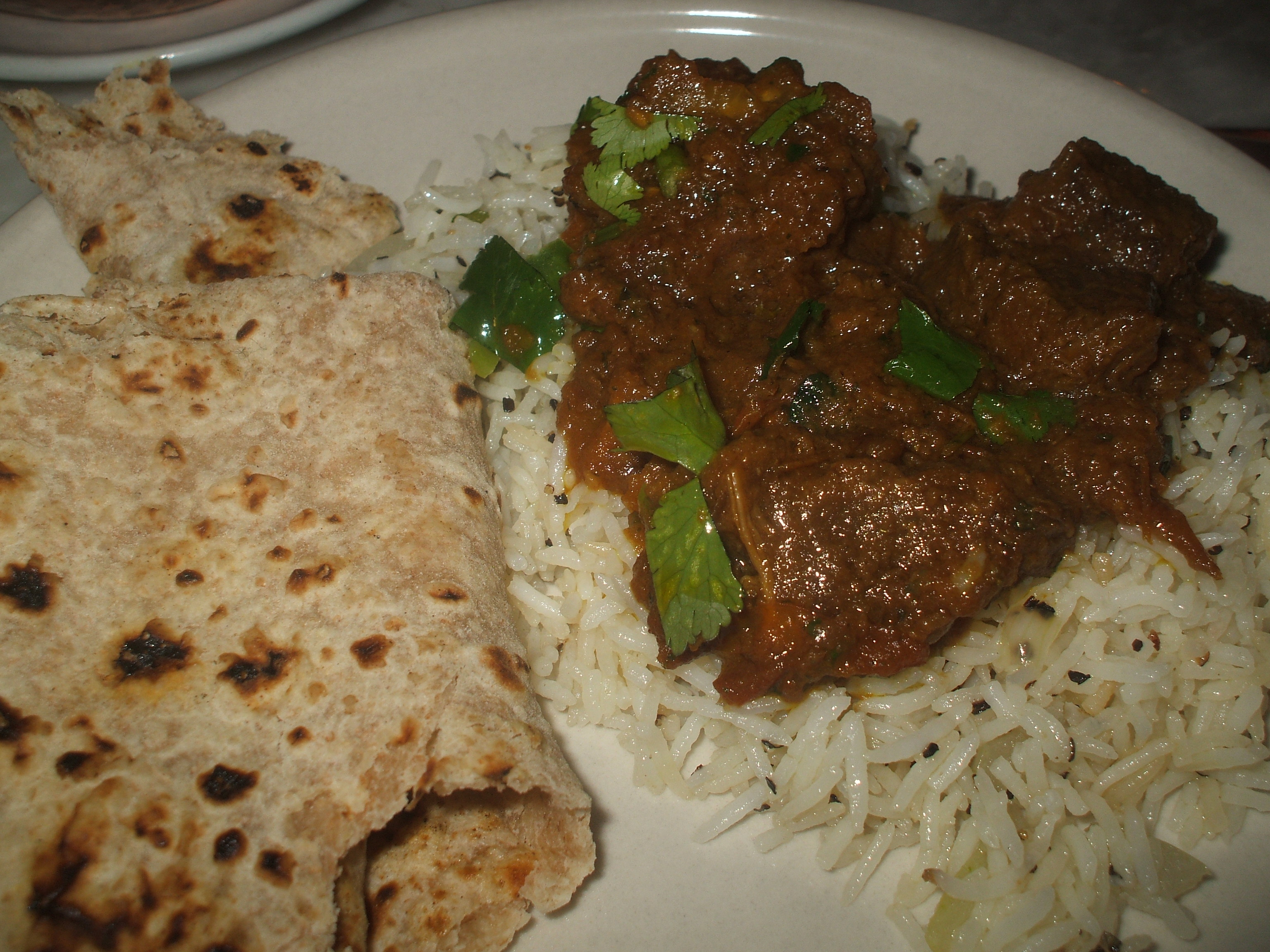 The first dip of the Chapatti into the Masala revealed a definite taste, encouraging. The Lamb dish was decidedly oily, or was it Ghee? As I ate on I decided it was certainly Ghee. Unfortunately the oily taste was the solitary taste this dish was going to give up. I was hoping for more. The Lamb content was more than adequate and the meat required slight chewing but was by no means of poor quality.