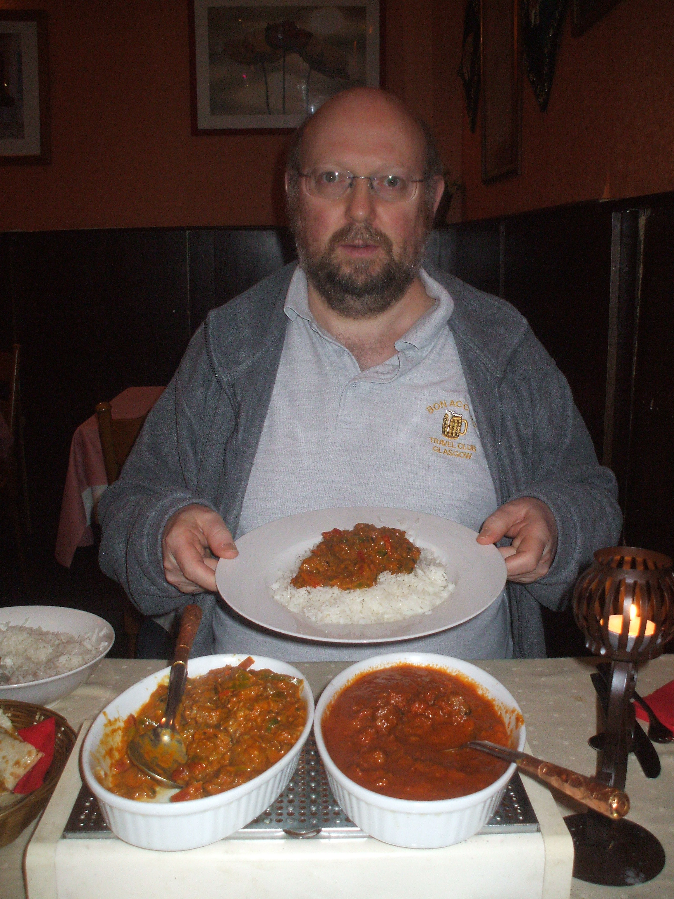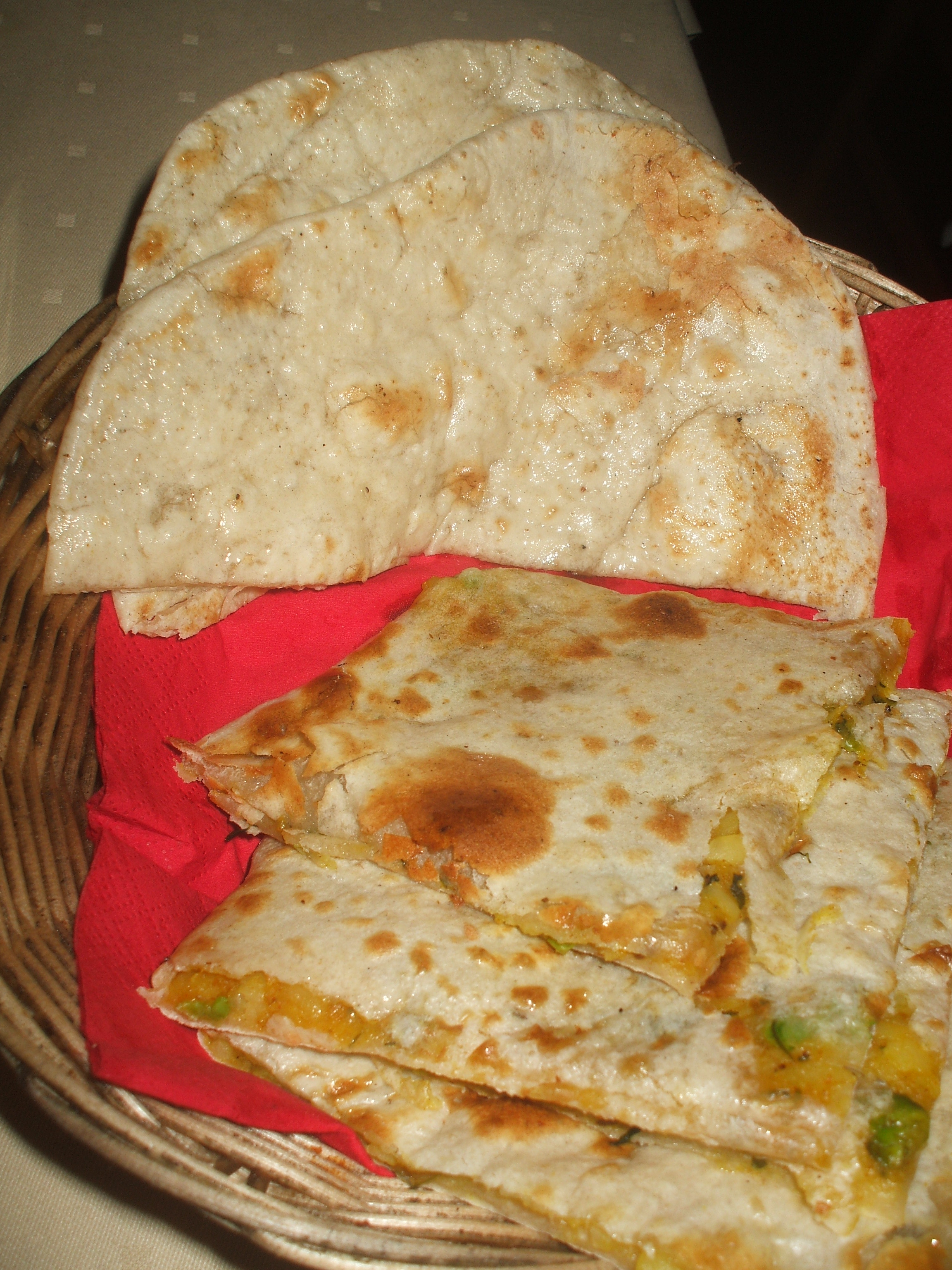 Marg chose the Rogan Josh and Hector the Ghoscht Karai. The latter was said to contain Tomato, Onion, Garlic and Ginger; there was no mention of the dreaded Capsicum/Paprika. I decided an Aloo Paratha would complete the order.