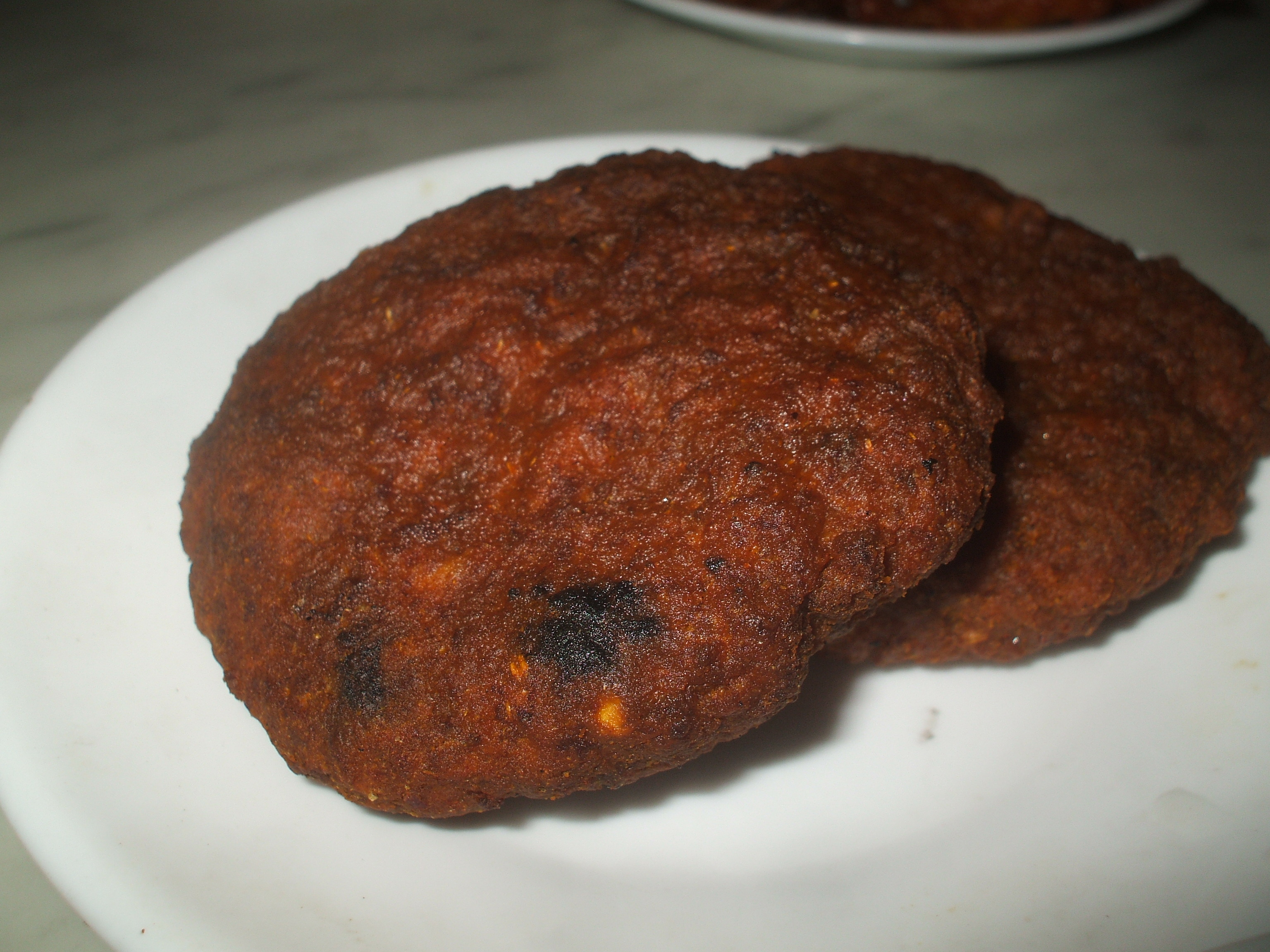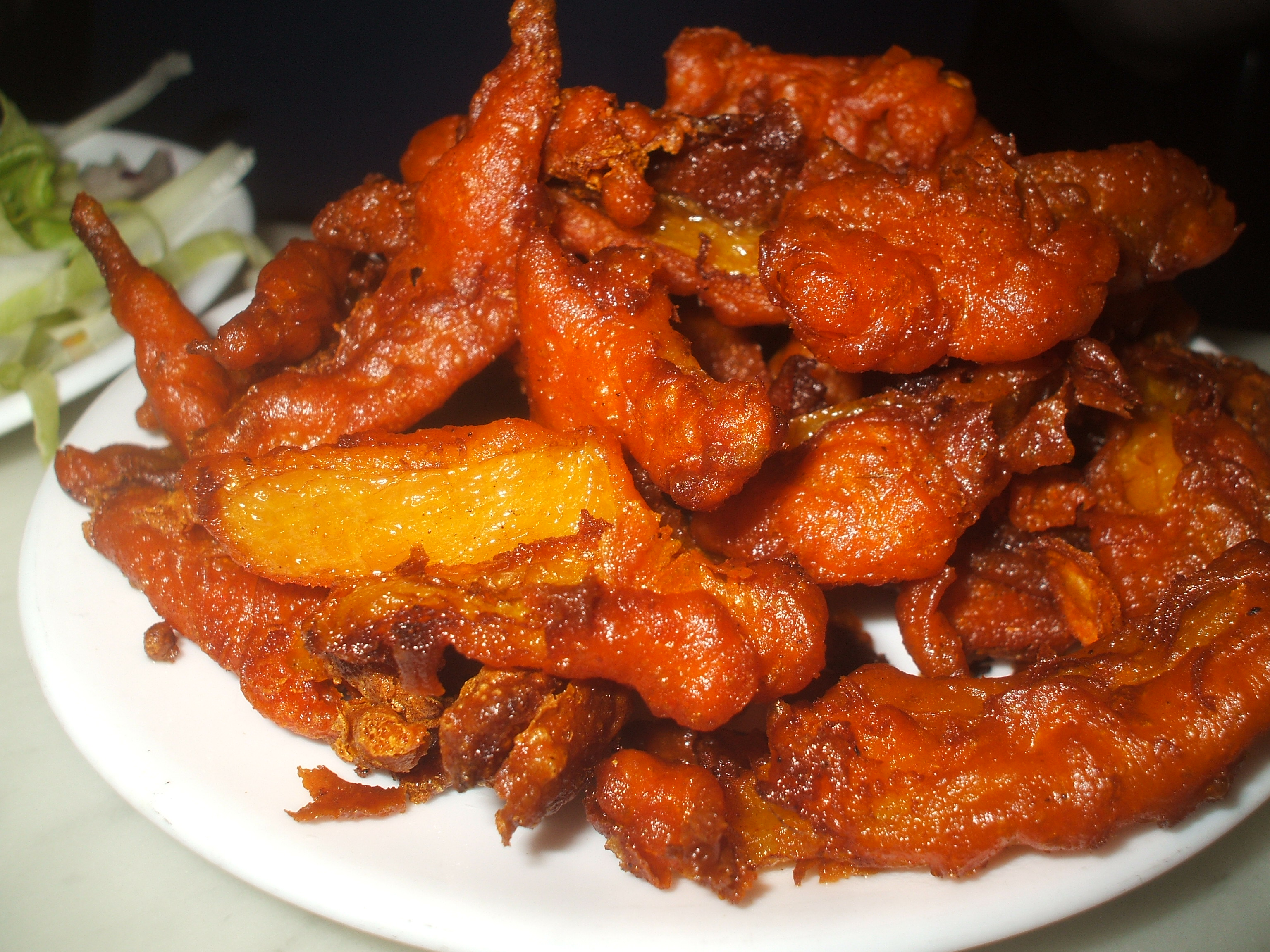 Ricky demanded Poppadoms and also ordered a Seekh Kebab and ‘Fred’ ordered a Bahji like pancake. As no take away menu was available I am somewhat in the dark. The mysterious Onions in Batter arrived, apparently this is the norm.
