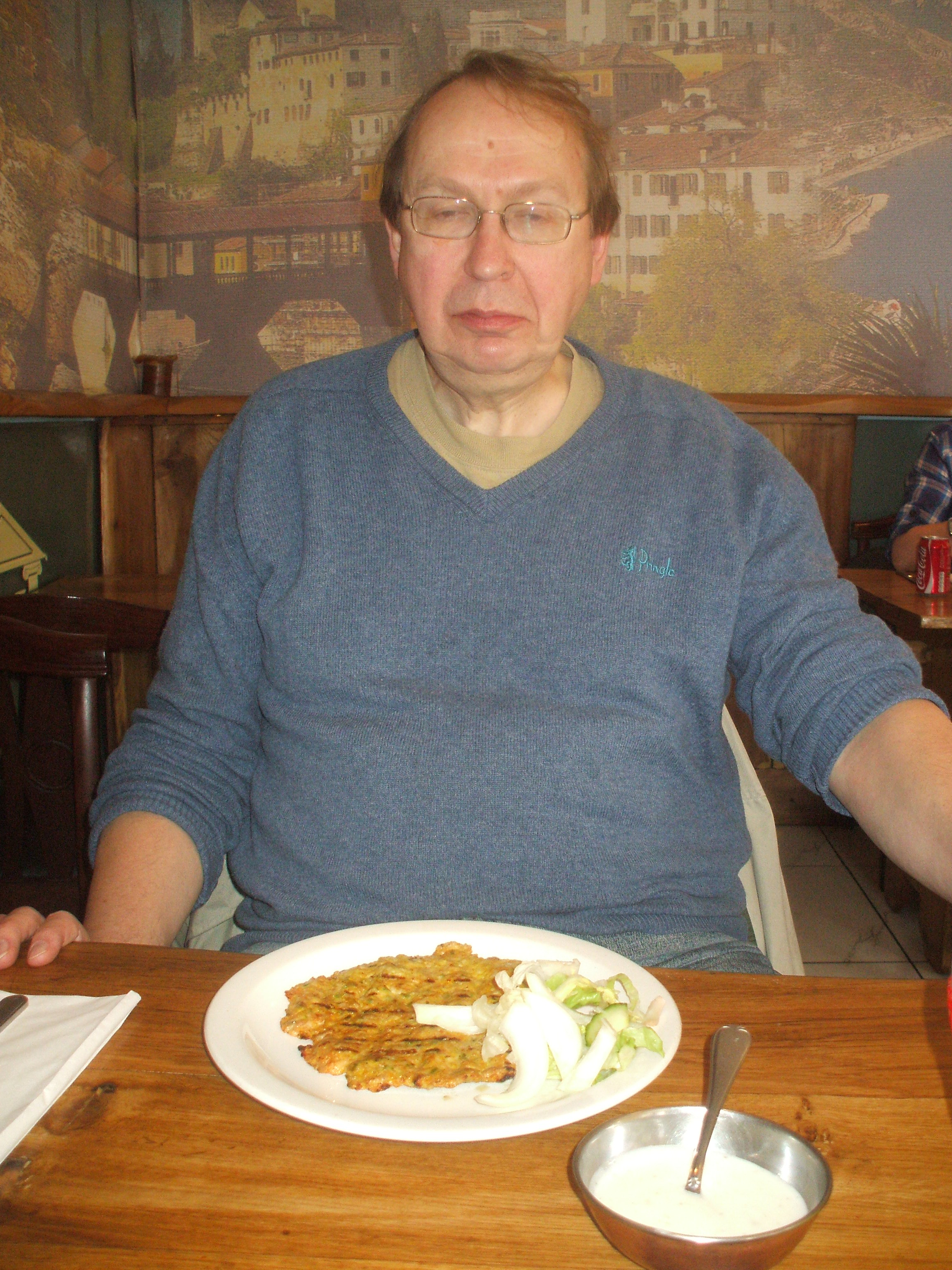 The Village was three quarters full when we arrived. A large group left and couples of a range ages steadily took their place. It was great to see grannies out for their Saturday afternoon ‘fix’. We watched all these people receive their food. Indeed, we were brought the adjacent table’s order. It did take an extraordinary amount of time for our dishes to appear, but as always the wait was worth it.