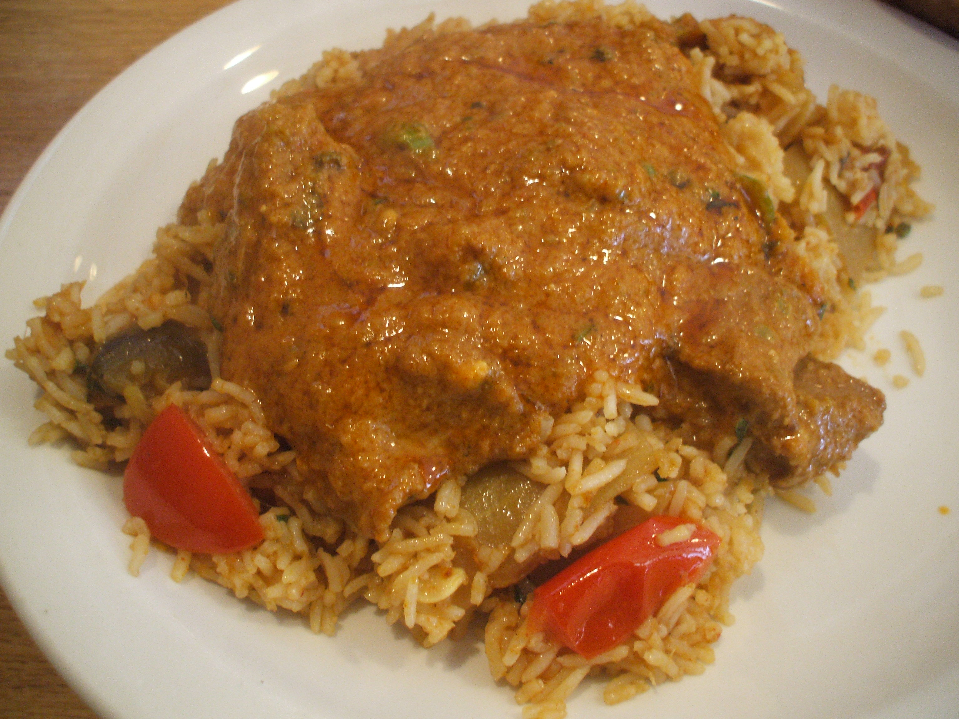 Given our sporadic attendance in recent times, it could only be the Village Lamb Desi Korma (mine served Hot). We were offered on-the-bone or off. We chose the latter; the meat content is significantly higher. Two portions of Vegetable Rice ordered as accompaniments, of course.