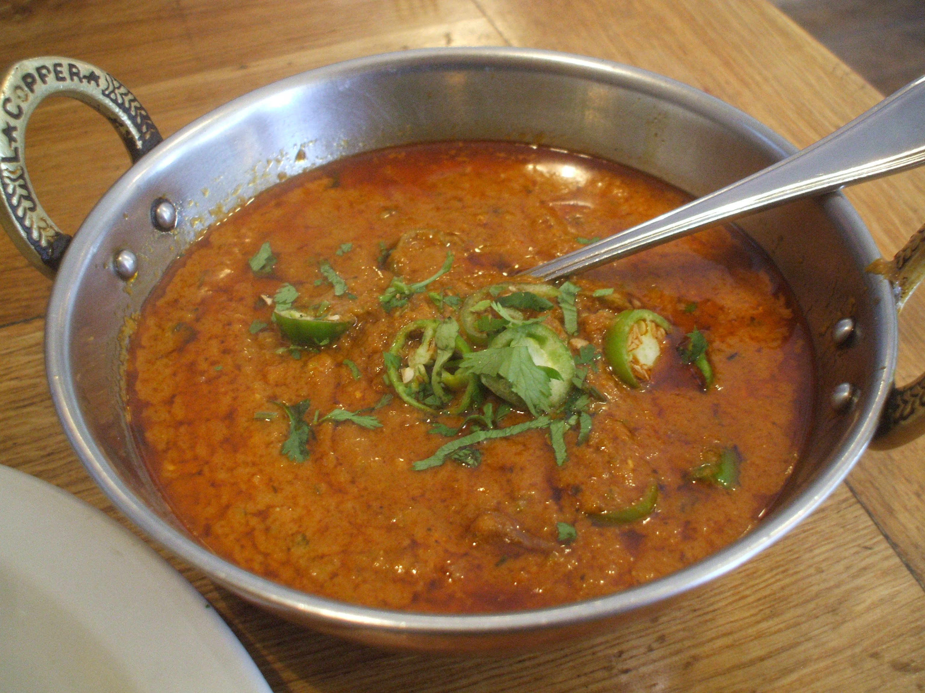 Given my propensity for dry Curry this is the absolute opposite. This is all about the Masala: (A Yogurt base with Black Pepper, Green Chillies and copious amounts of special Herbs and Spices). The Lamb was present but not in as great a quantity as was served here a year ago. The prices have not gone up in some time. Perhaps the management could introduce the 0.5kg portion when they re-launch? How long the Lamb and the Masala had been in each other’s company one may speculate, however despite all this negativity, the meal is superb. The taste lingers longer afterwards, the full Citrus blast to the fore.