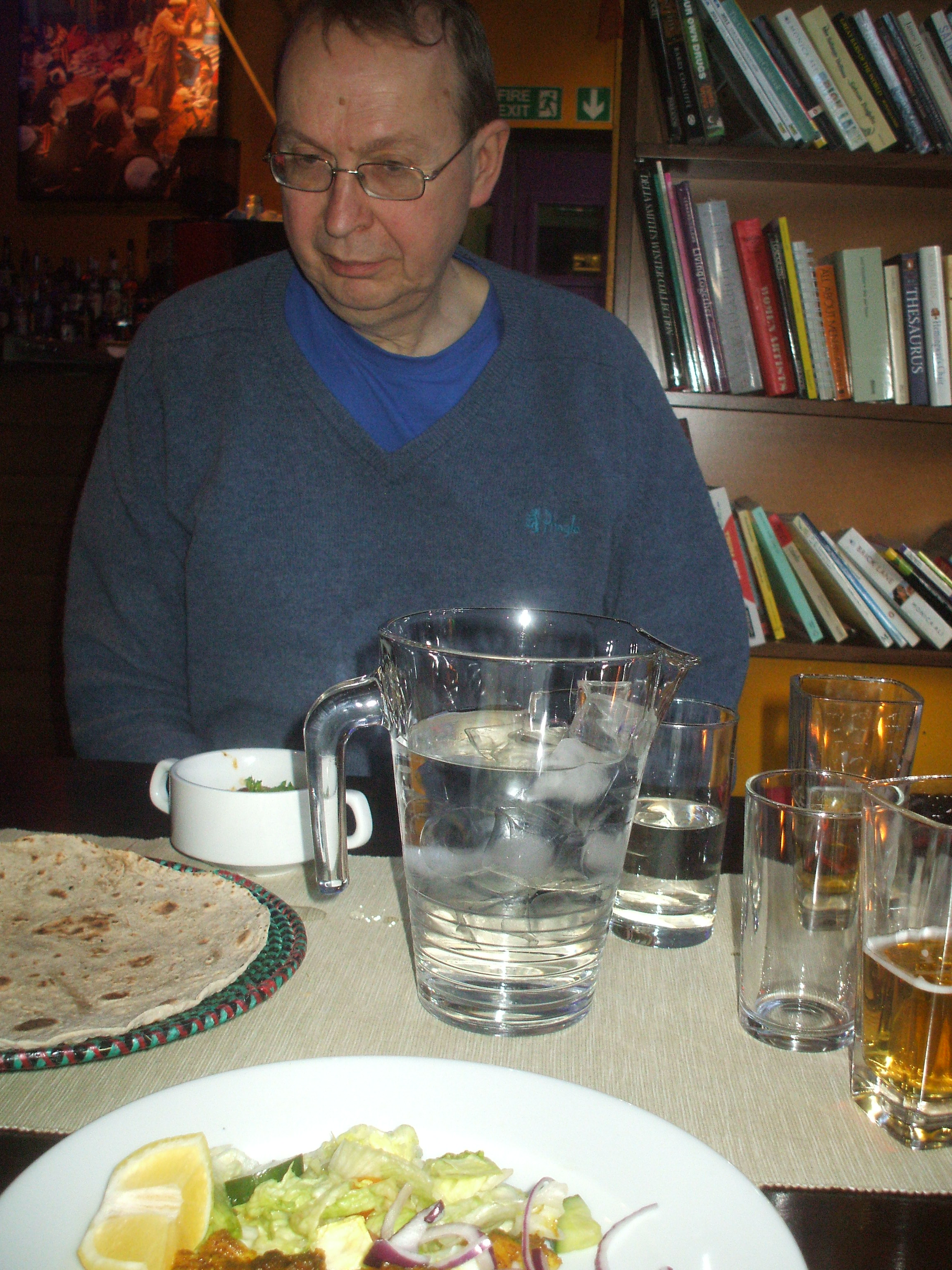 Given the inevitable effects of Delirium Tremens, I thought this would be quite a chatty Curry meet. It was becoming so. This was just as well because the staff were running around doing nothing as far as I could make out. A young lady with her coat on was now present, was she staff, what was being sold in Tesco that required two members of staff to be sent? Another minute passed. In fact it was becoming ridiculous, two Mutton Curries, were they not expecting to serve this tonight?