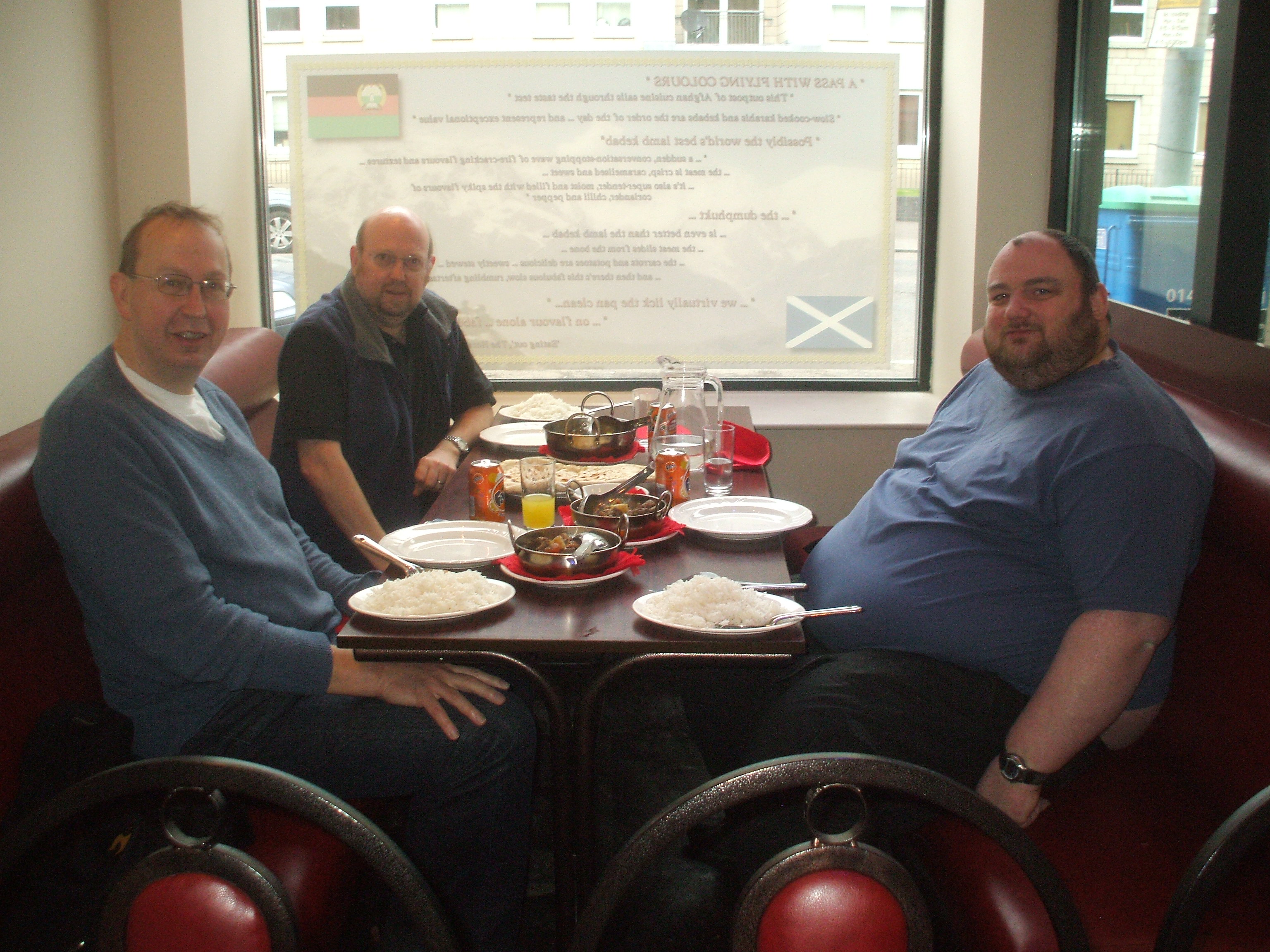 The Boti Kebab is a Lamb delight. Dr Stan took the advice, Jonathan selected the Mixed Starter which featured the Boti and the Chicken and Seekh Kebabs. Hector has to confess that he could not face a Starter. The butcher at the end of the street was advertising Stornoway Black pudding, I had to buy some, and then I had to sample it. To have lunch prior to a Saturday Curry-Heute is not the norm. And so I had to watch the Chaps get stuck in.