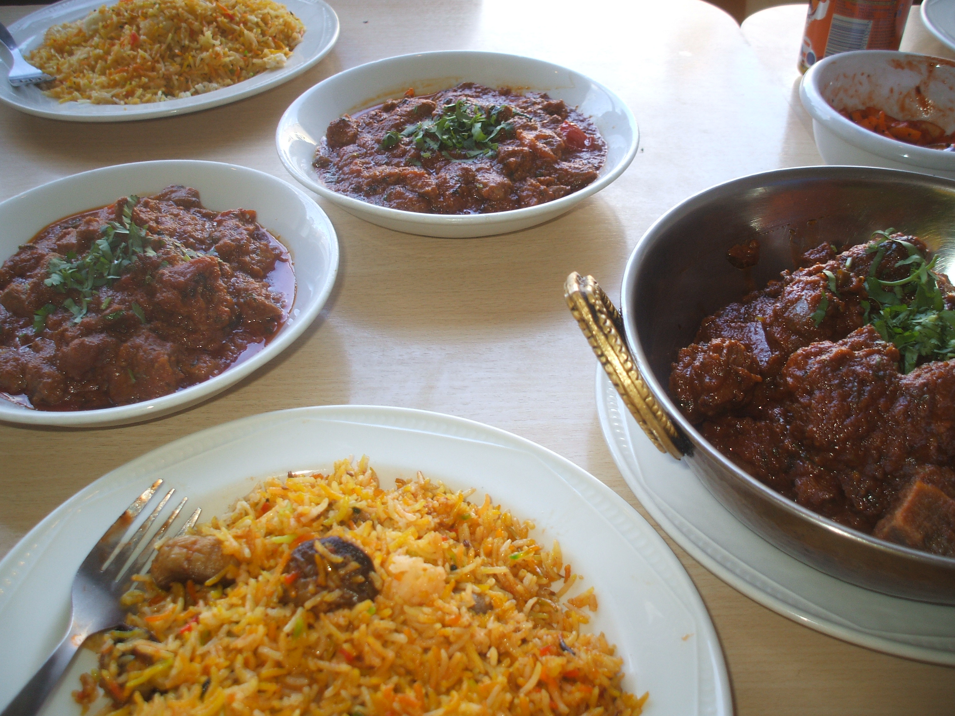 £50?  This was more than we anticipated (the only time this has ever happened).  The half kilo had come back to haunt us.  Jonathan had been given two normal portions, hence the two plates.  It was explained to us that one portion is 300g, and a kilo is therefore three portions.  Now, one does not need a PhD to work out that this does not tally.  Fortunately we did have one in the company. A couple of quid was knocked off the bill and all was well.  This also means that we had ordered five Curries!  And why not?