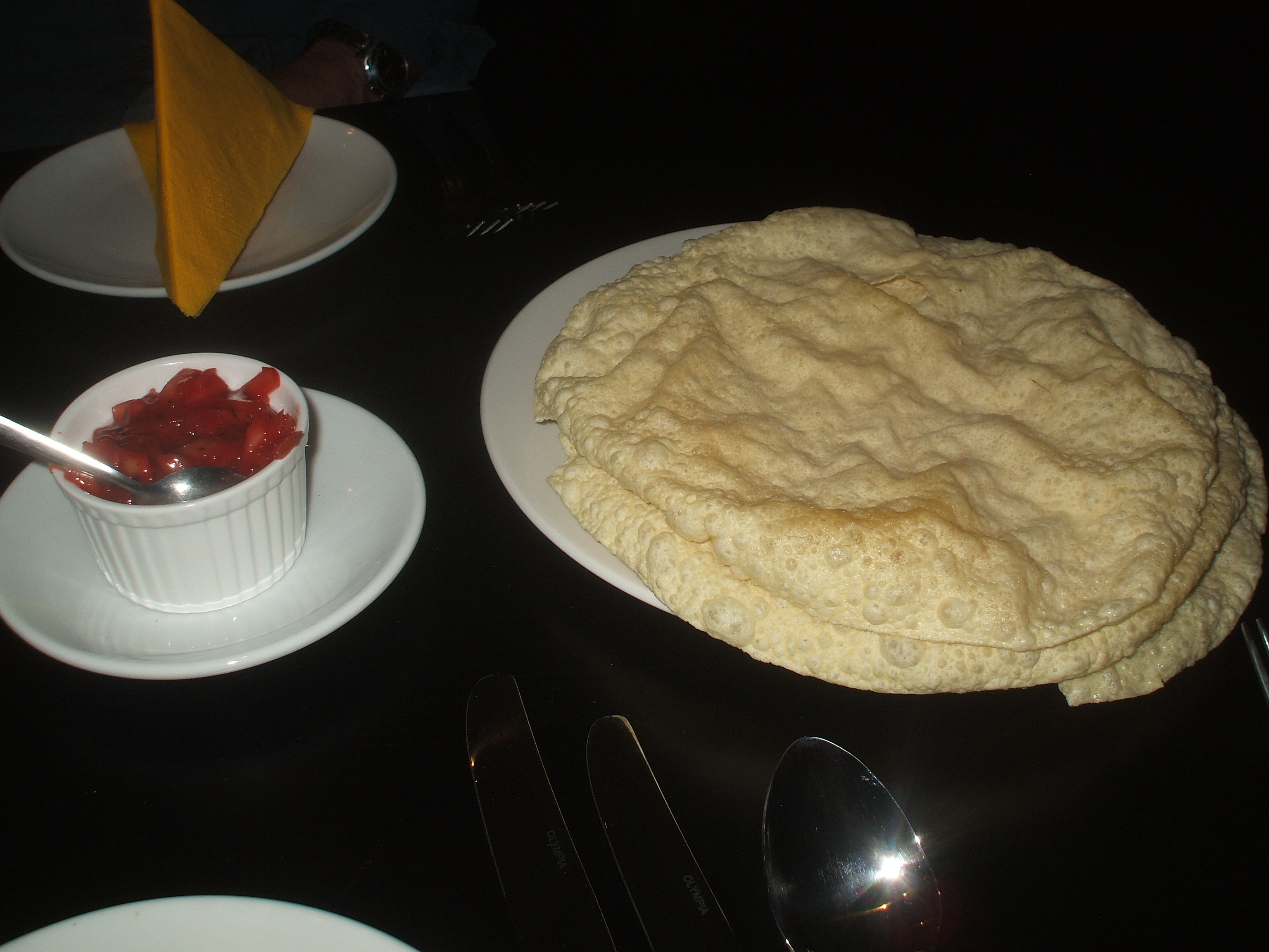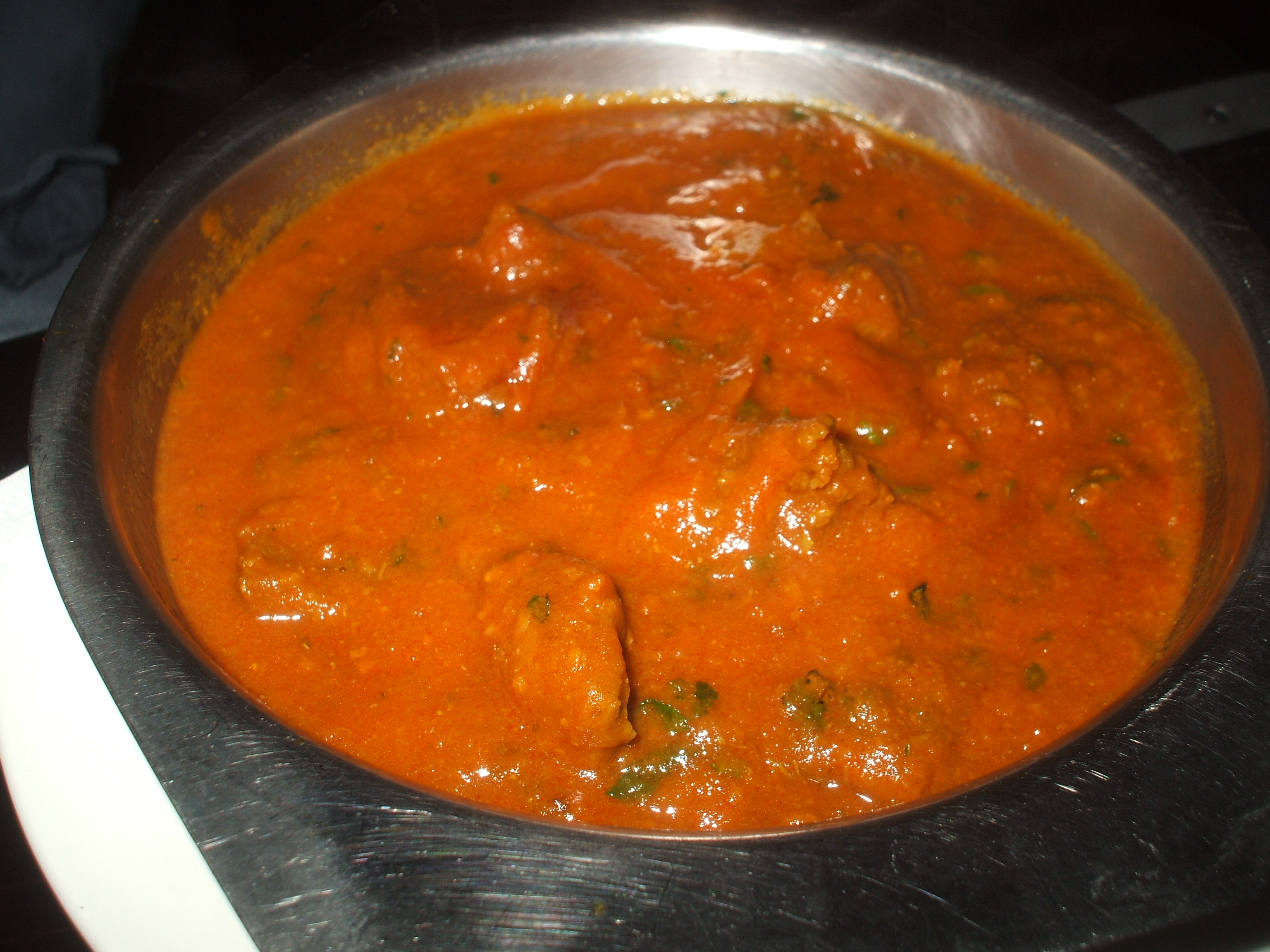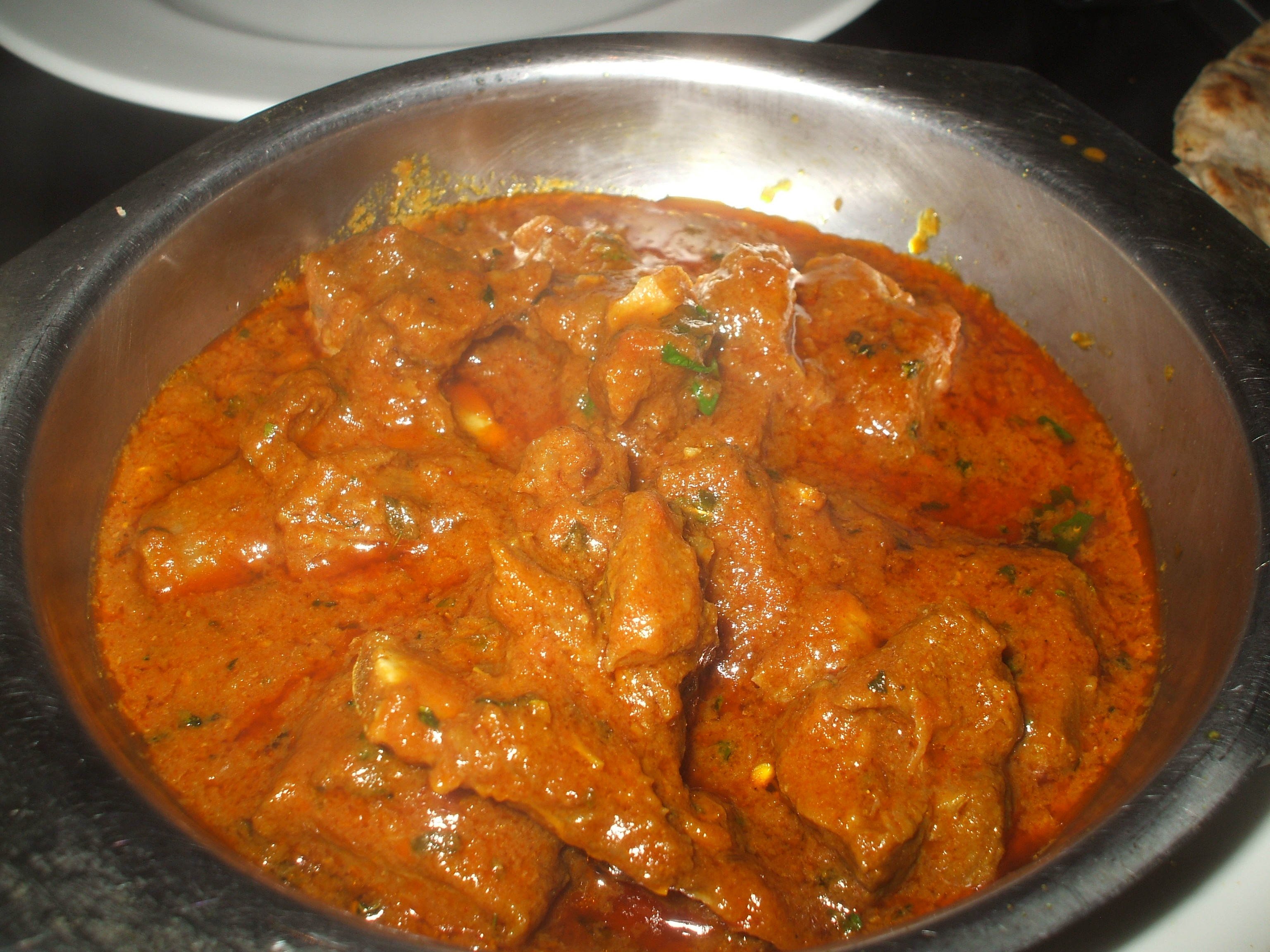 Shortly after 20.00 we were invited next door, we were officially the first customers and the guinea pigs. The complimentary Poppadoms and Onion Chutney were brought straight to the table. There was no menu. The waiter asked us what we would like and he would do his best to get Chef to cook it. Tracey later rhymed off the following: Lamb, on-the-bone, dry-thick Masala, lots of Cumin, Herbs, Coriander, and Methi – medium to hot. I am a predictable old Hector. I was told that on-the-bone was not possible, but Young Hari appeared and stated that Hector could have his on-the-bone. This turned out to be a crucial statement.