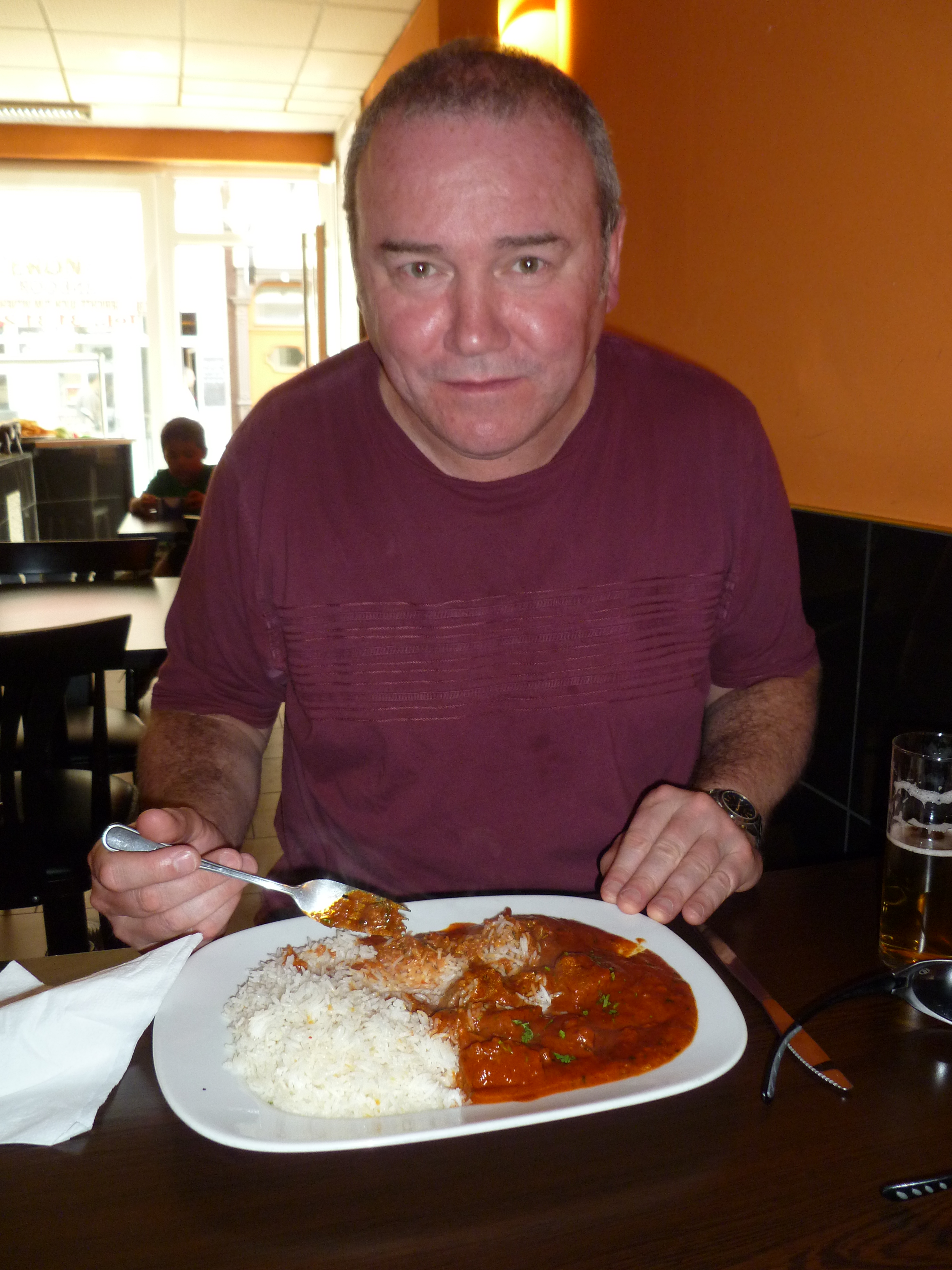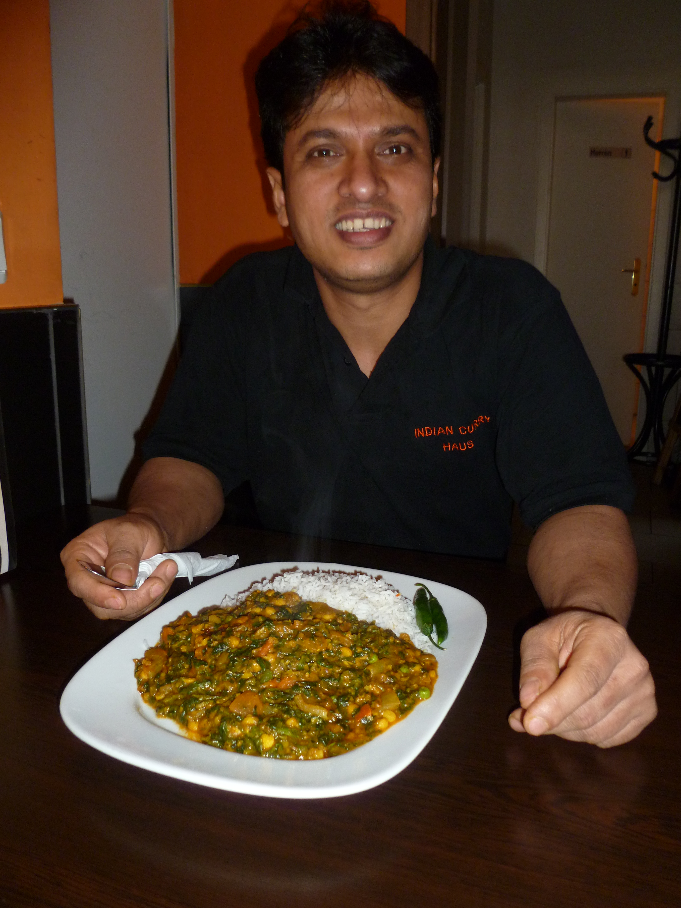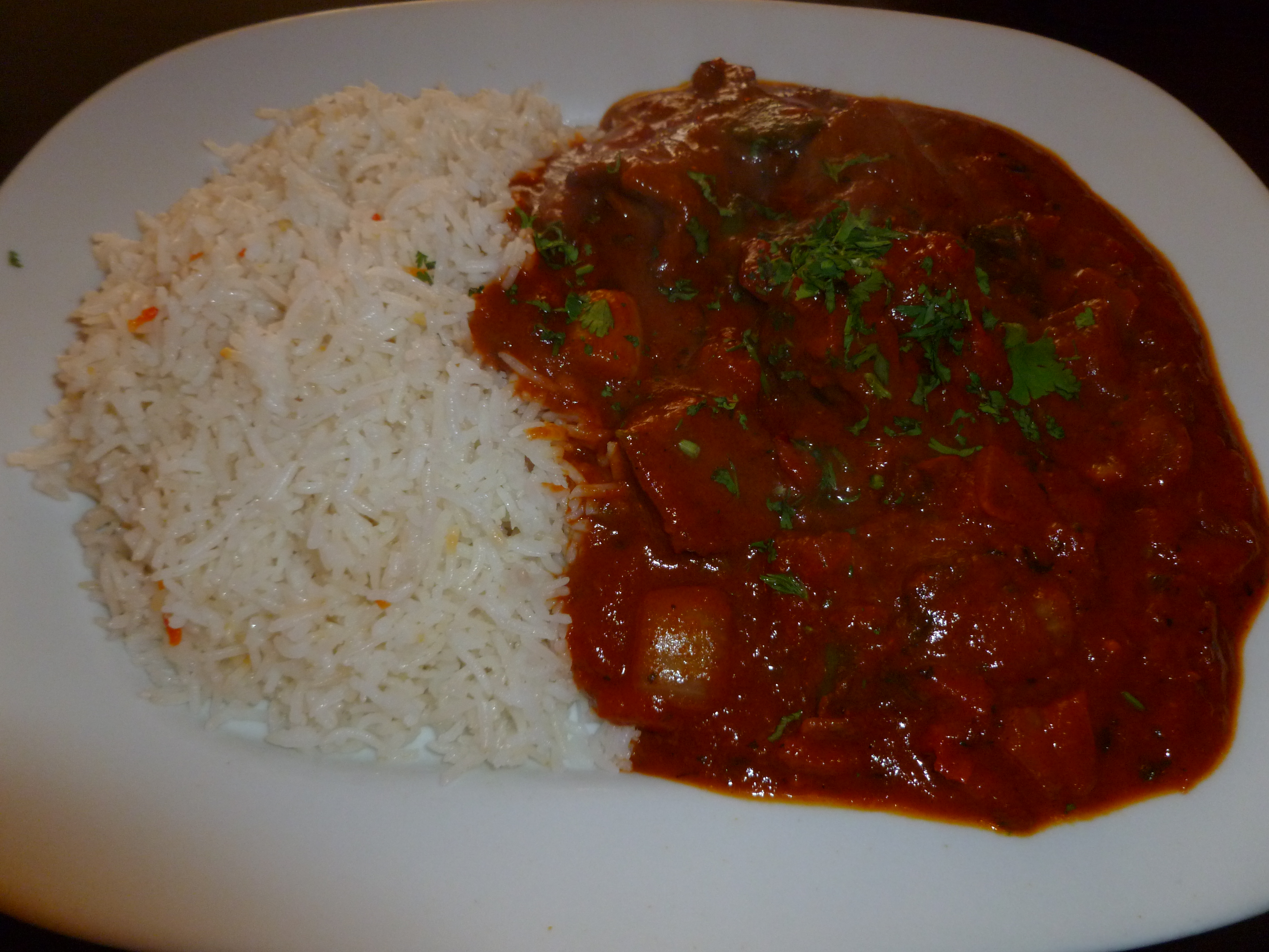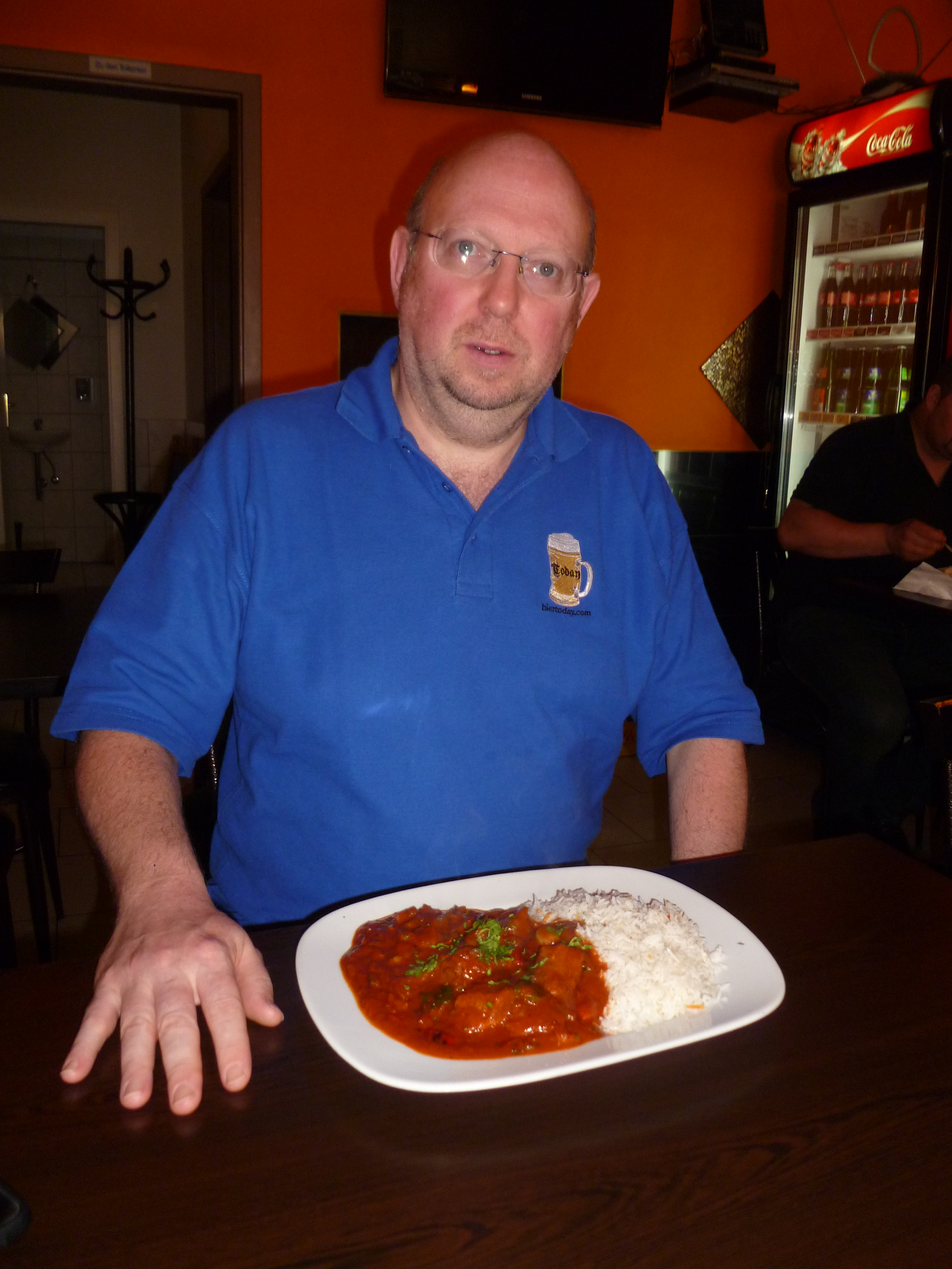 The Curry was indeed – Hot. For Germany this is quite a feat, like trying to get a steak without blood. The Lamb was perfectly cooked, just chewy enough and very tender, not the pulp Hector served his guests last week. The Masala still had a touch of what I call the – Bisto – taste, as if packet ingredients had been used. This is not the case, one watches Chef prepare the dish and sees all the add ins. There was an underlying Cinnamon which certainly added to the experience.