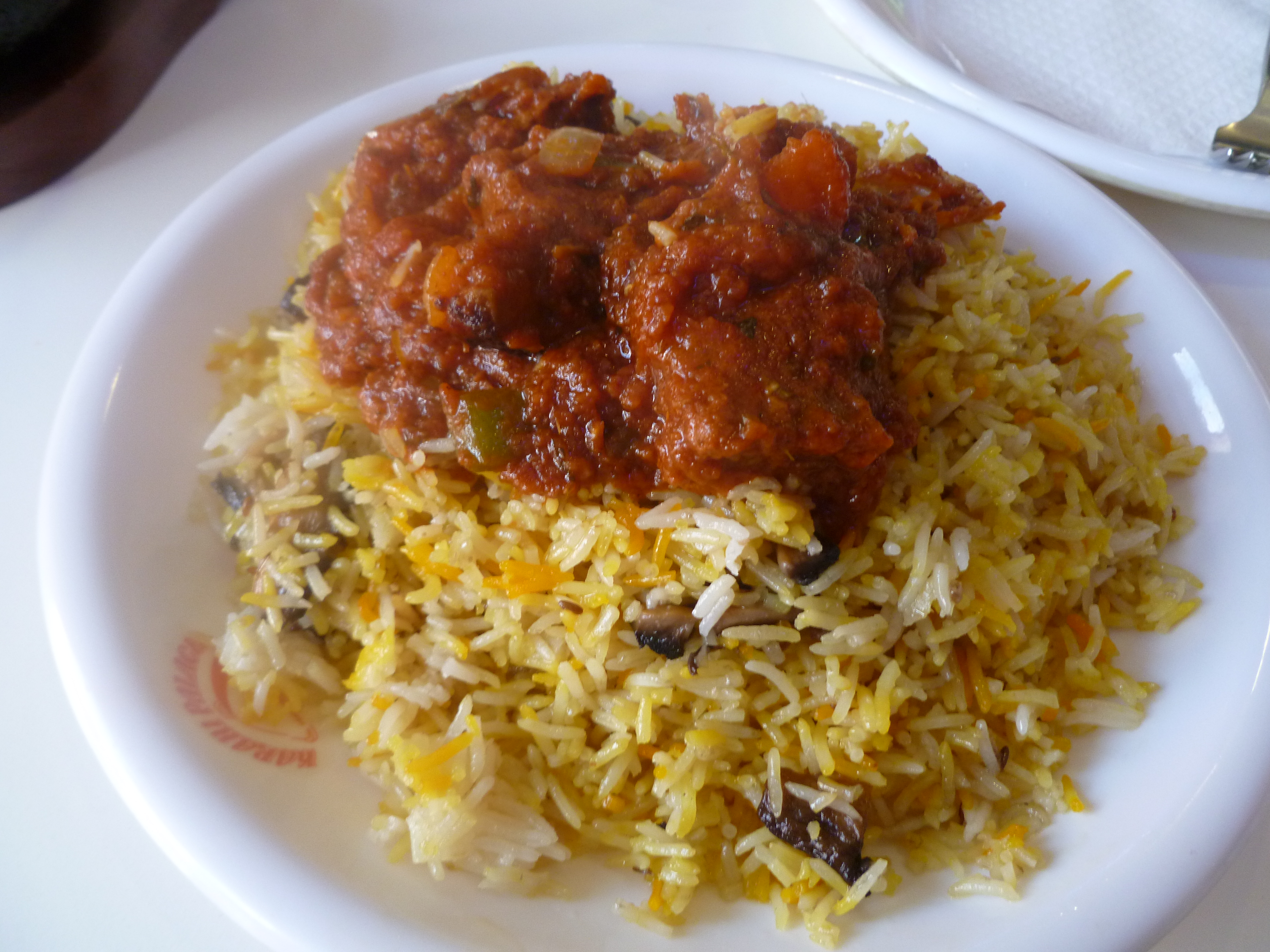 The wait was not a long one. In the meantime a modest Salad and a Raita was presented. I spotted the Rice first – a huge portion, certainly enough for two. The Karahi was brought to the table – the sound was exciting – I was nearly in movie clip mode again. The Curry looked very familiar, I felt I knew the taste before I began – the Clydebank Taste as I have described before.