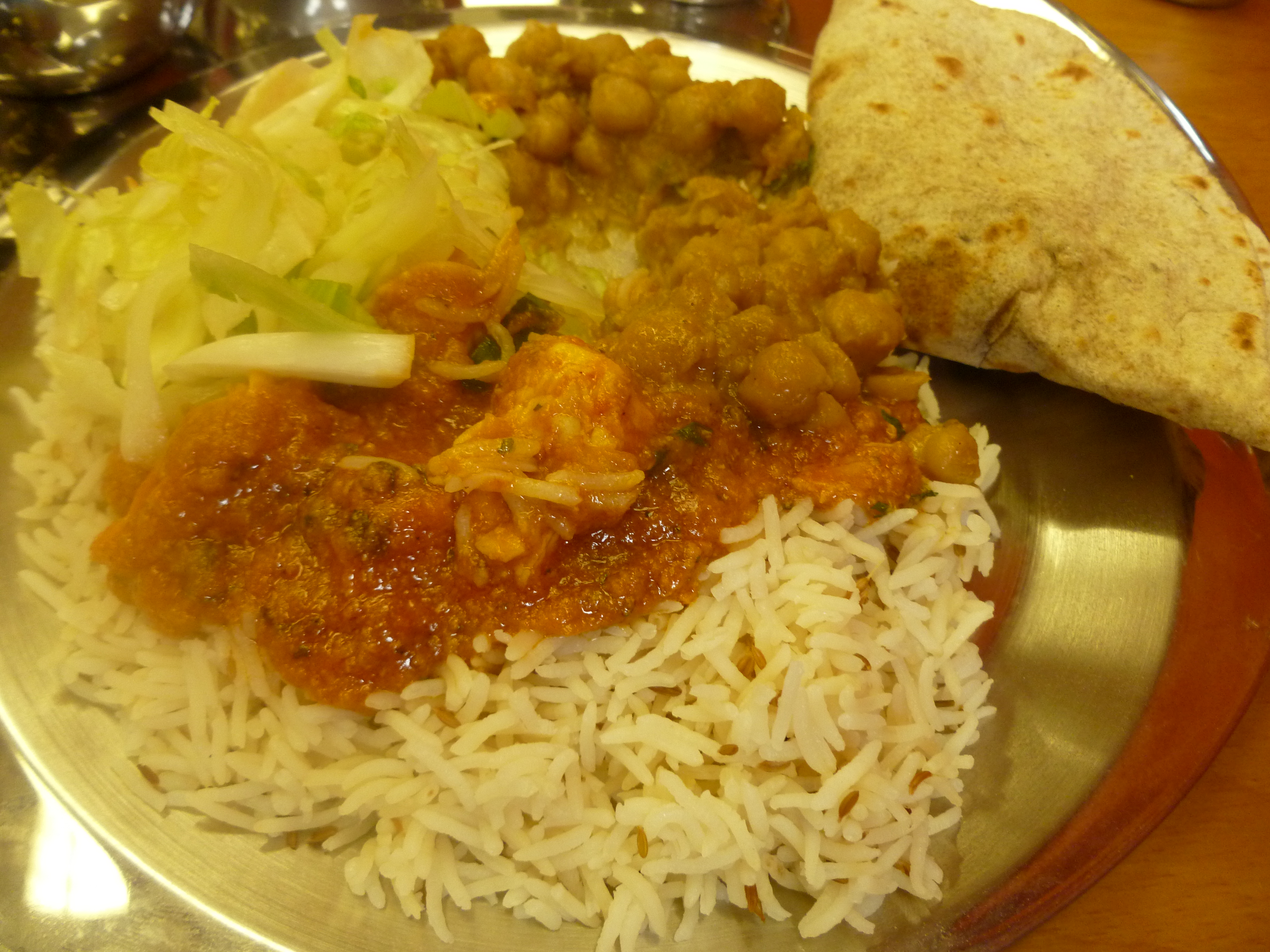 I shall not dwell long on the offer of a Burger after I informed Mein Host that I only required a Snack. The Thali steel plates were on the counter – I enquired and the words Chicken and Chickpeas were forthcoming. OK, let’s go for this.