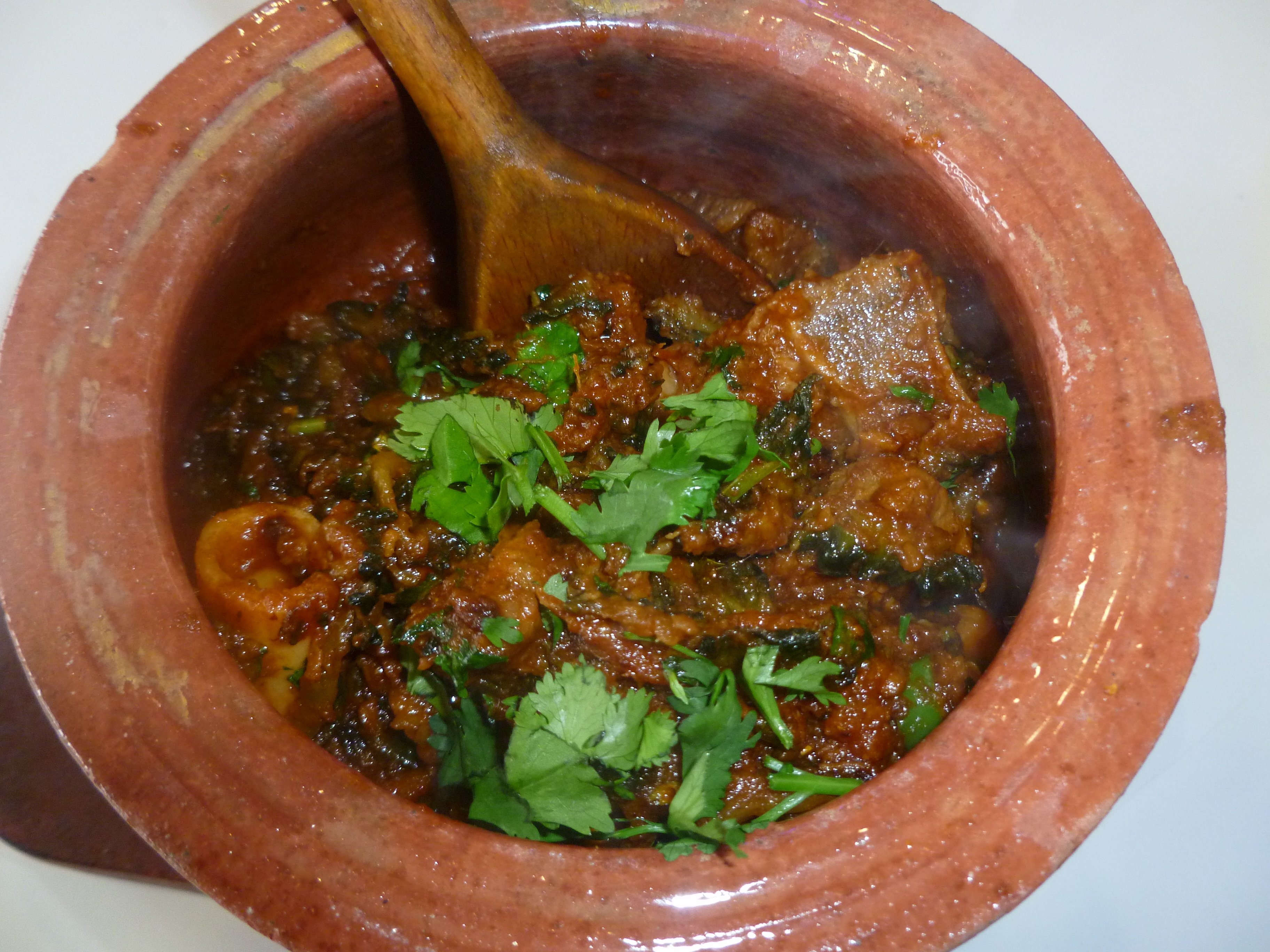 The super-taste that would put this curry top of my list never revealed itself; however, there was something decidedly unique about the flavour. I now know what. There was a stringy green-black Vegetable strewn through the Lamb – was this the Karela? If so, I look forward to this experience again.