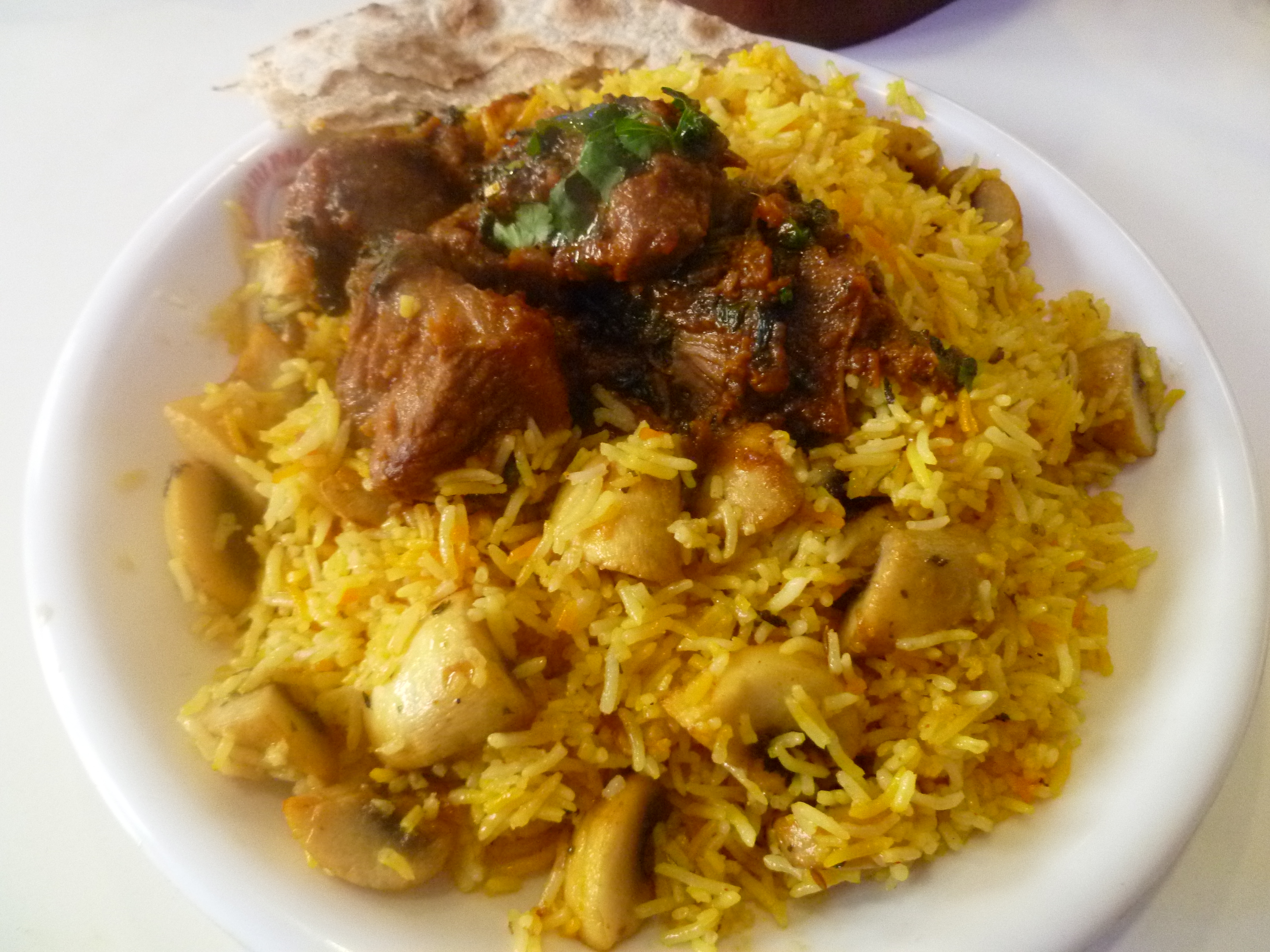 10 – 15 mins later my sizzling flower pot arrived with a mountain of yellow and white rice and steaming roti.