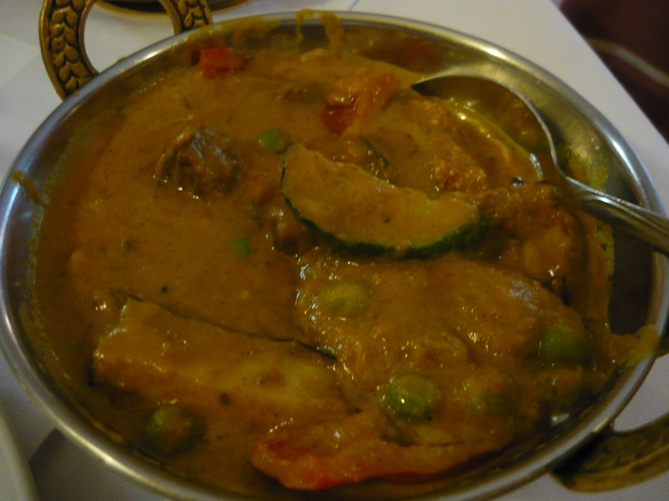 Marg likes her Butter Chicken or Chicken Dahiwala as it is called here. Hector, ever mindful of Curry with no distractions went for the Mutton Subji Lamb with various Vegetables in an Indian Sauce. I asked for it to be Scharf.