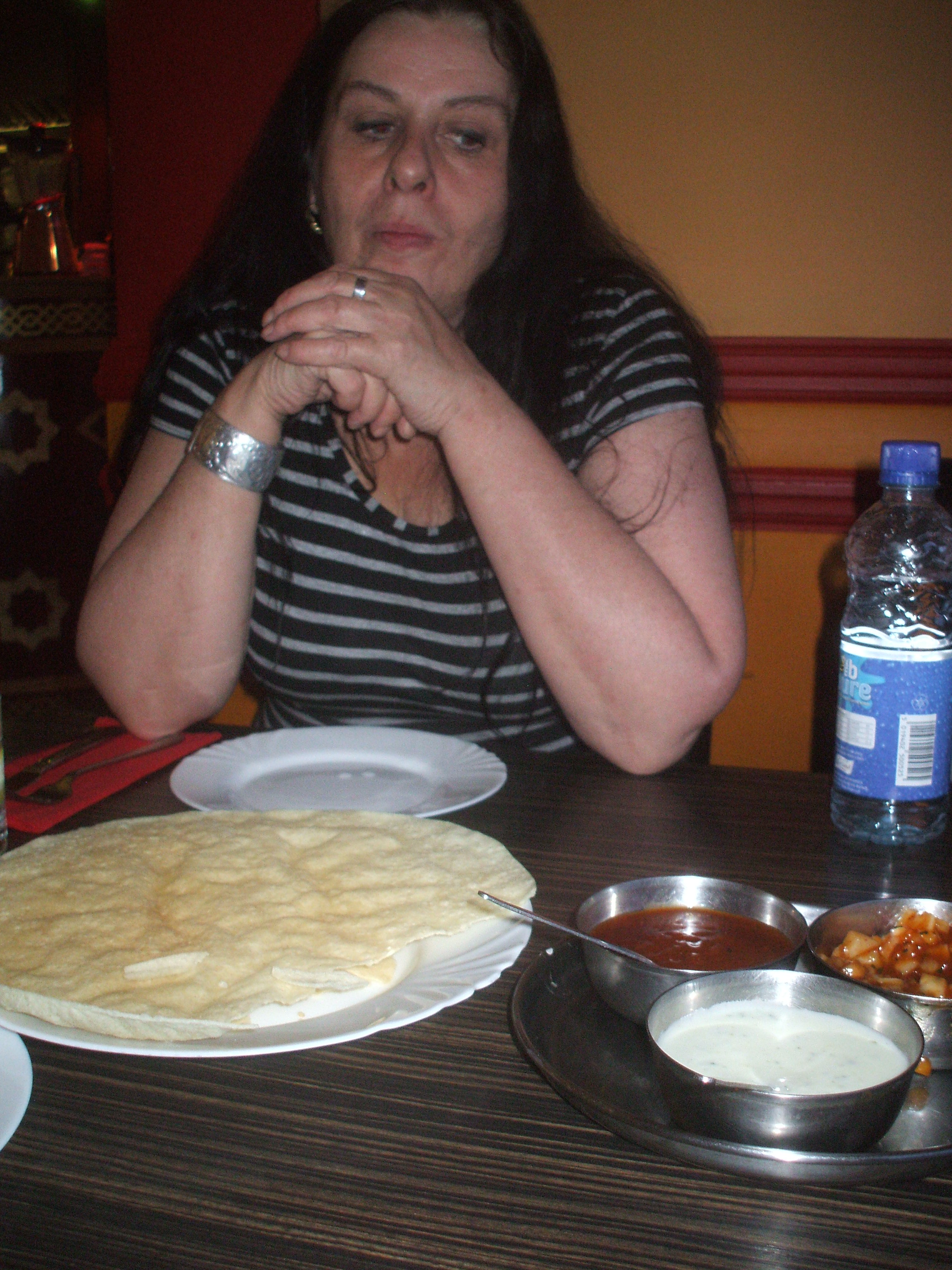 PQ). No Hassan, so still no hug. A single complementary Popadom arrived with the Chutneys, another was brought quickly when the first disappeared. This was breakfast.