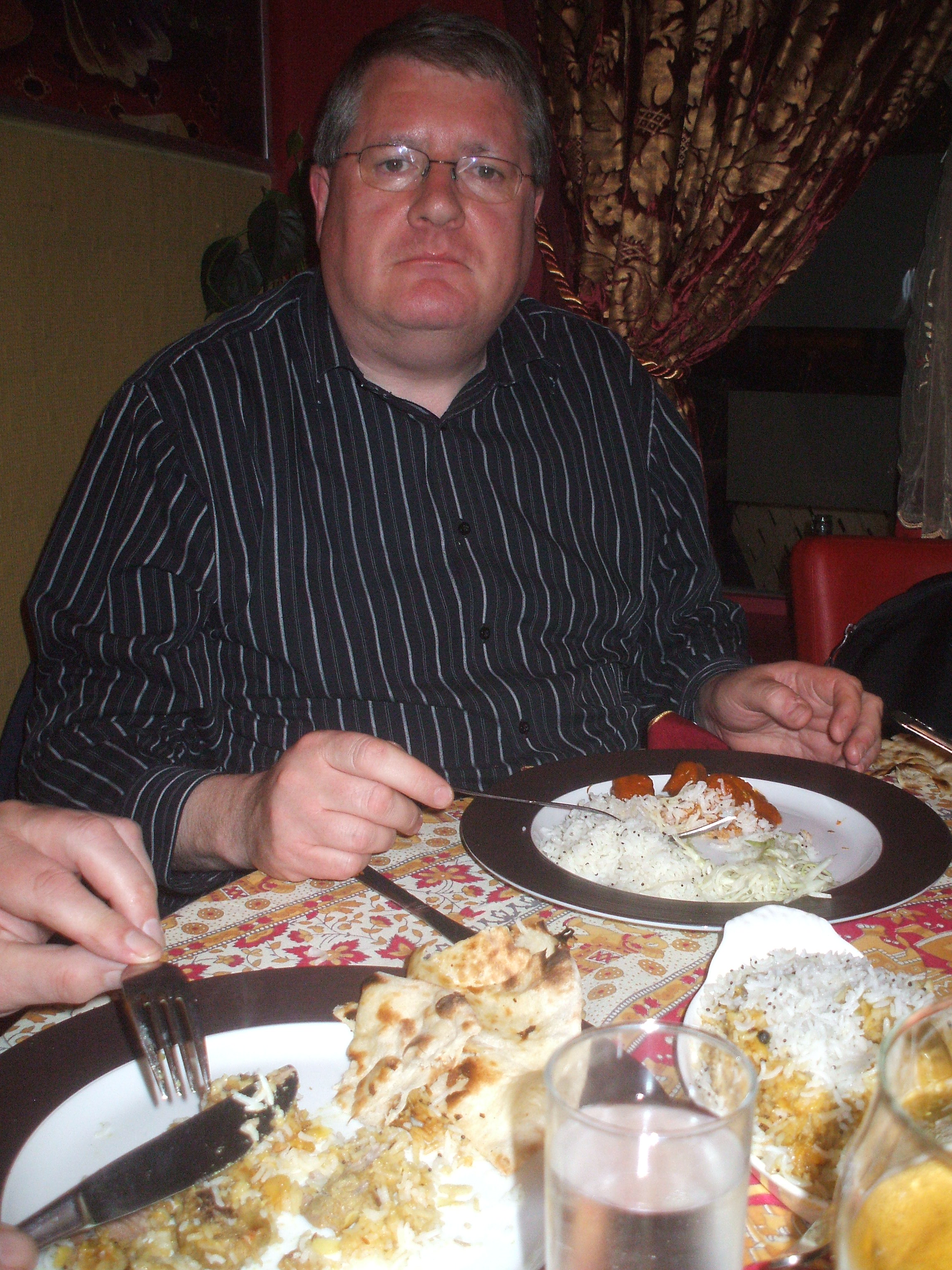 Robin’s Biryani came with plain Pilau Rice and the Lamb buried underneath. No Vegetables in the Rice, no side dish of Masala. Is this a Biryani? Robin stated that this was the worst Curry he has had for some time, and he cannot remember the last one this poor.