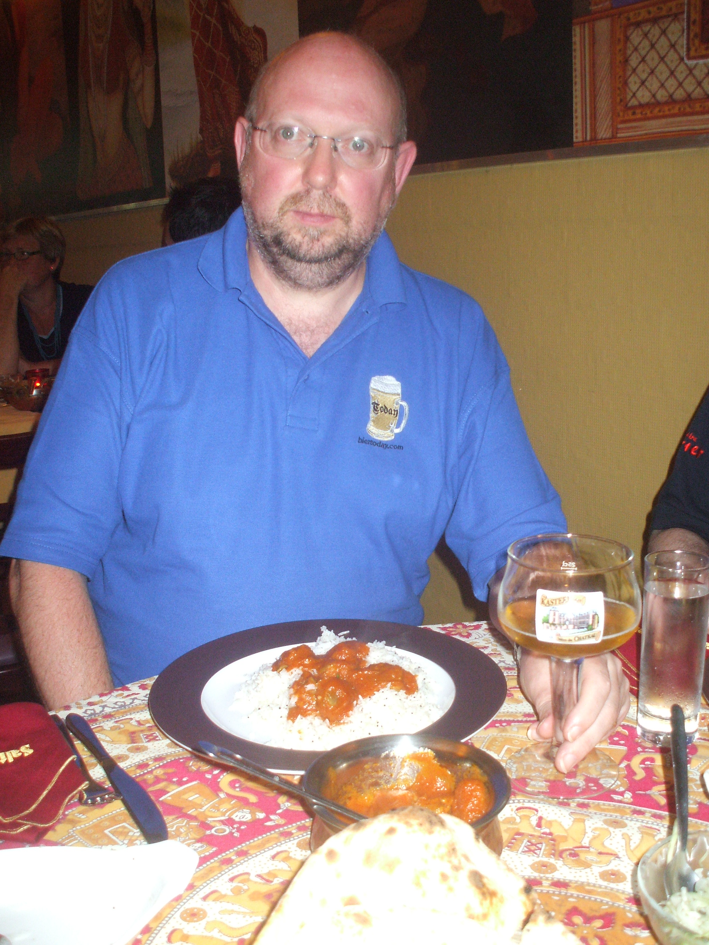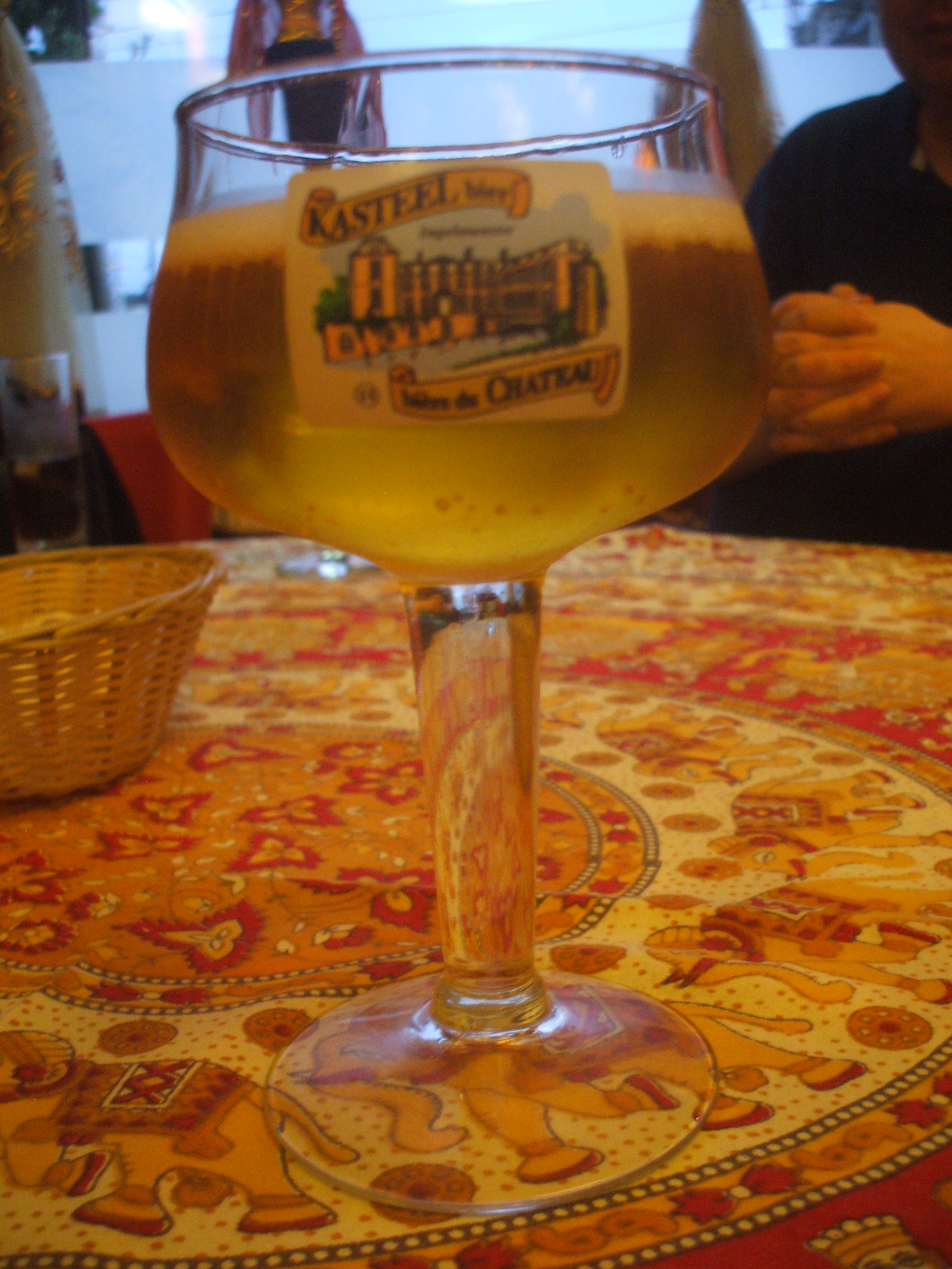 Hector ordered a Bier! Keeping tabs on the progress of Glasgow Rangers v Malmo, and the slow but sure serving of the other diners, a glass of Kasteel Blond was the suitable accompaniment. Neil had the Brun. Howard had a cola, Robin some water, we were set.