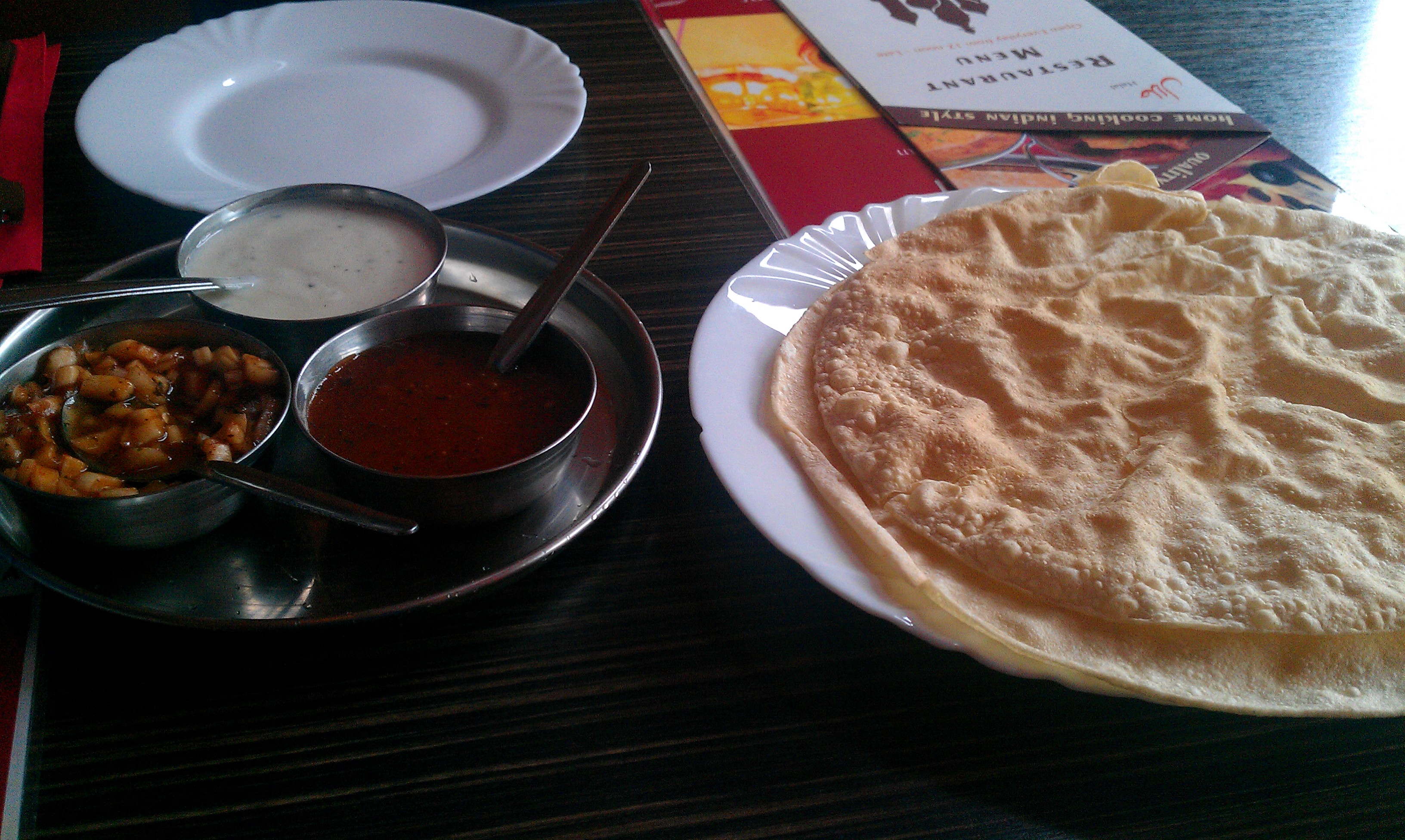 The Complementary Poppadoms and Onion Chutney/Raita appeared before we could draw breath. (Why do we have to pay for this elsewhere?) Then the highlight of the day, apart form the Curry itself, was a familiar head surfacing from behind the counter.
