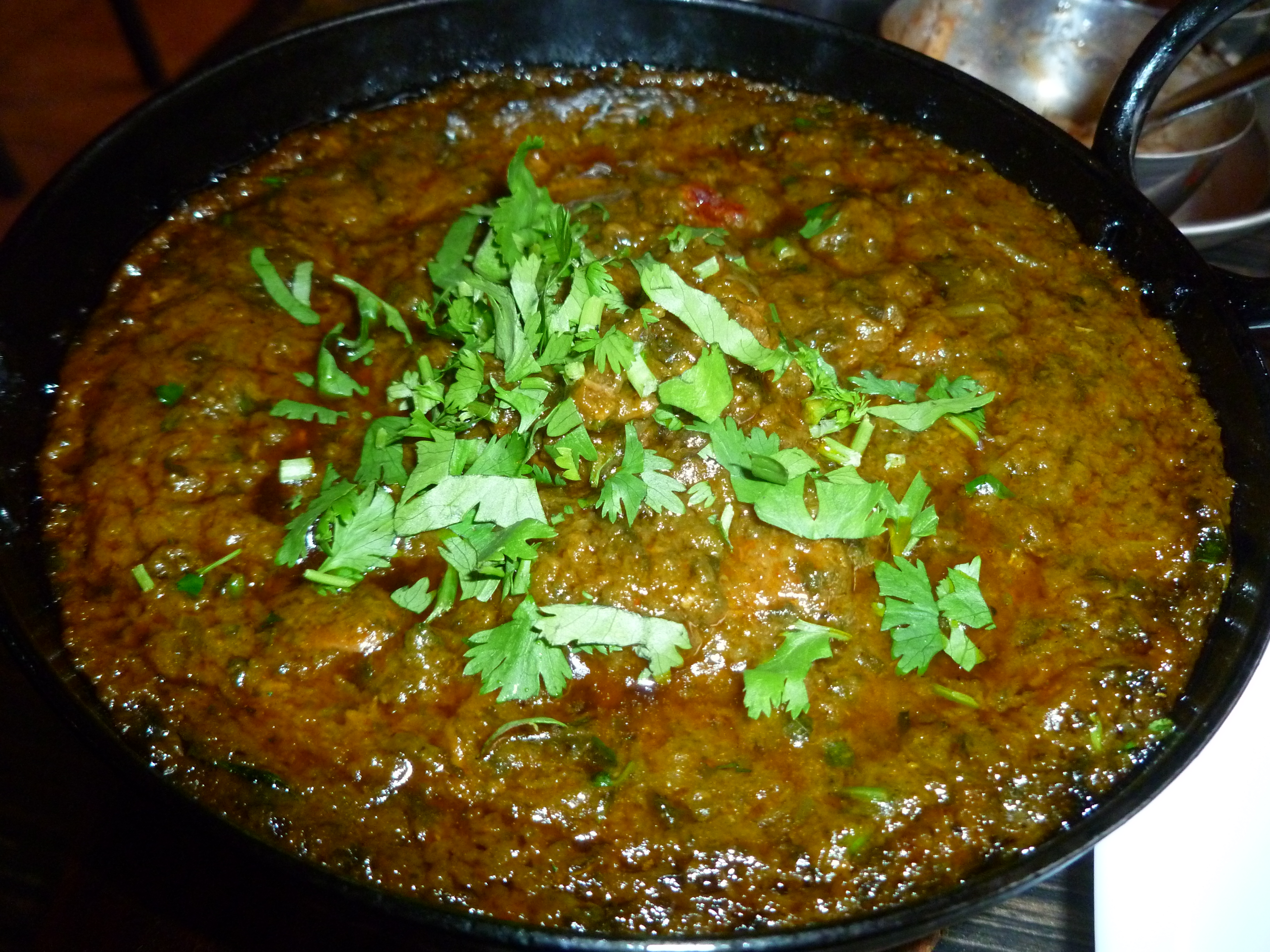 The thought of Spinach had been firmly planted in Hector’s mind, Pallak Gosht (off-the-bone, medium, with a kick) and the excellent Garlic and Coriander Nan, for a change. The joy of Curry is that the array is vast, yet the root ingredients are standard.