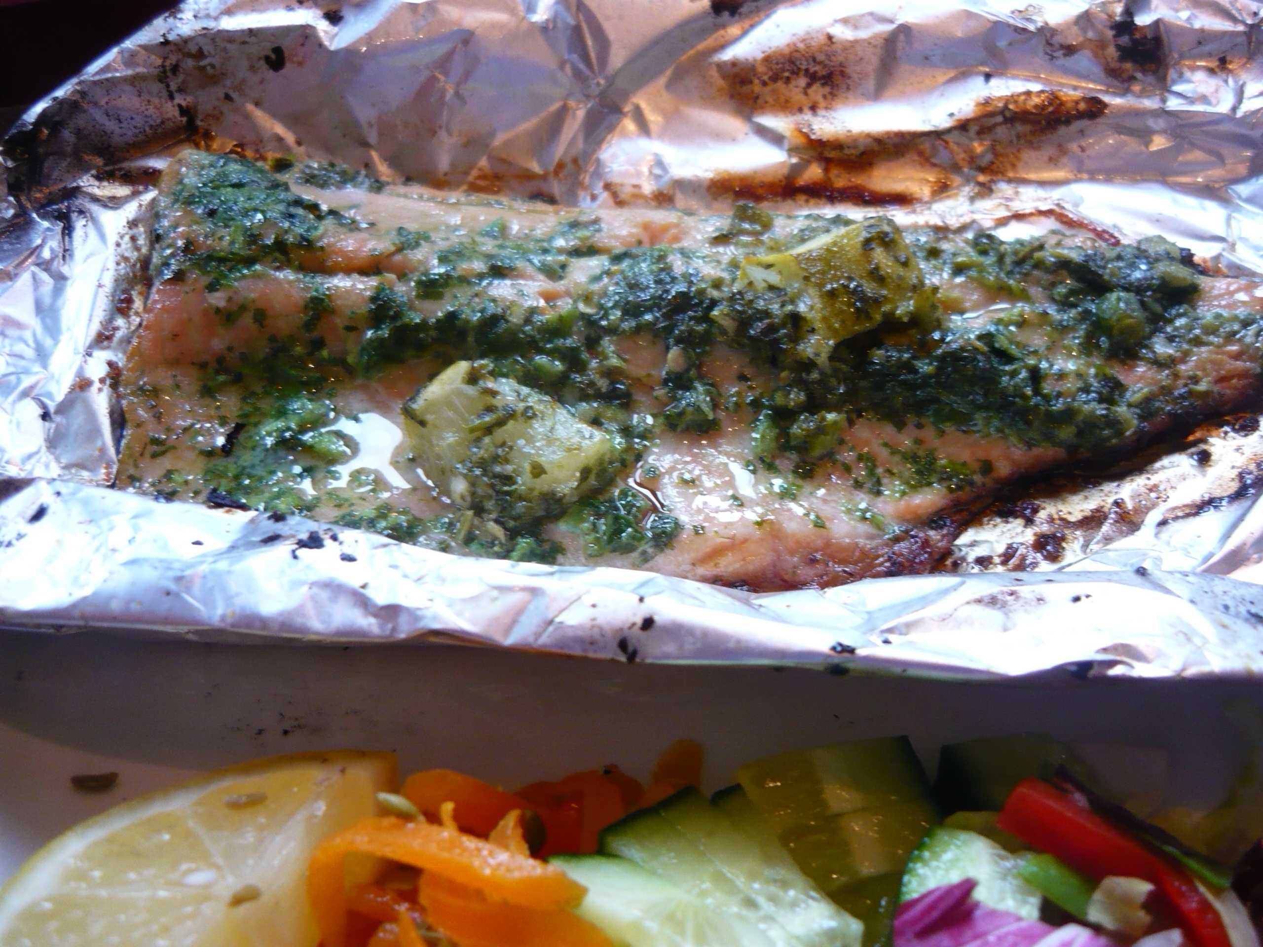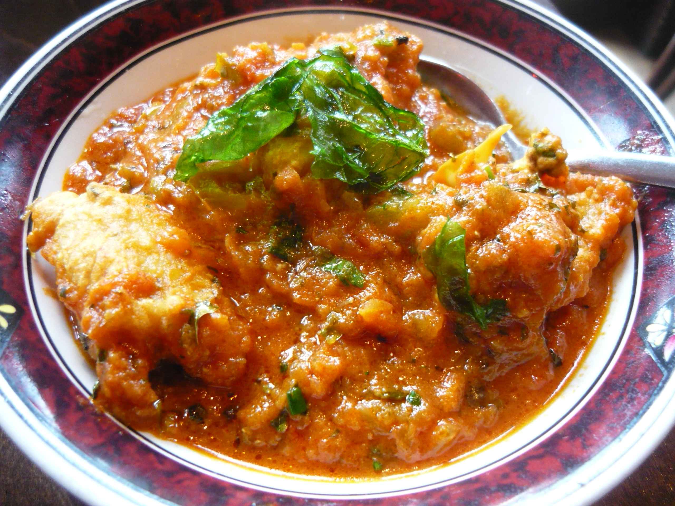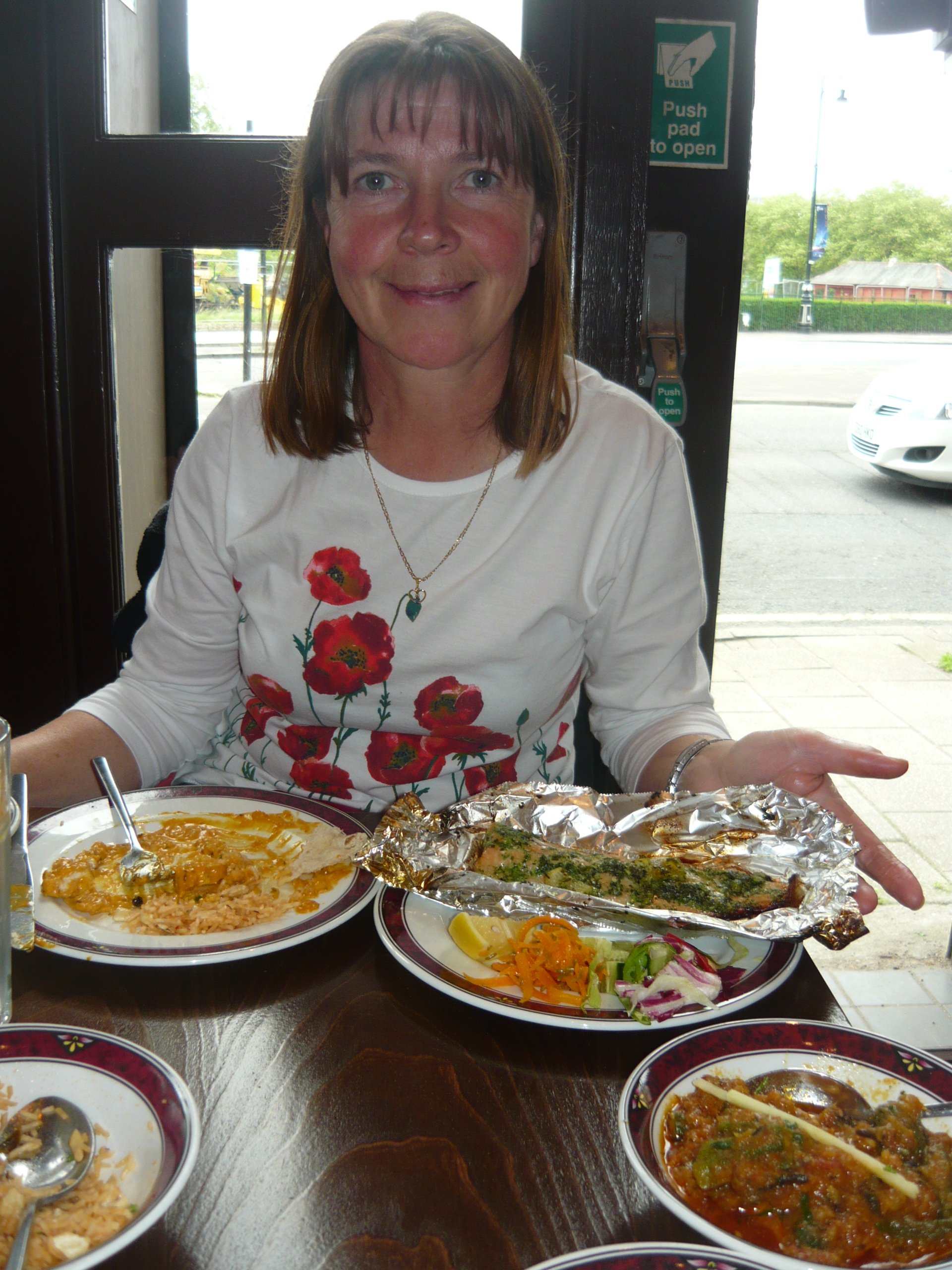 The dishes started to appear: the Lamb Massalum arrived along with the Rice and the Butter Chicken. Marg was straight in to her favourite dish. She loves the richness of the Masala and the fact that the slight kick is not excessive. She also regards the portion as perfect, more would be too much. Her Fish dish came wrapped in foil, I was permitted a taste. It was Trout with Coriander and Lime, it did exactly what it said on the tin (foil), and no more.