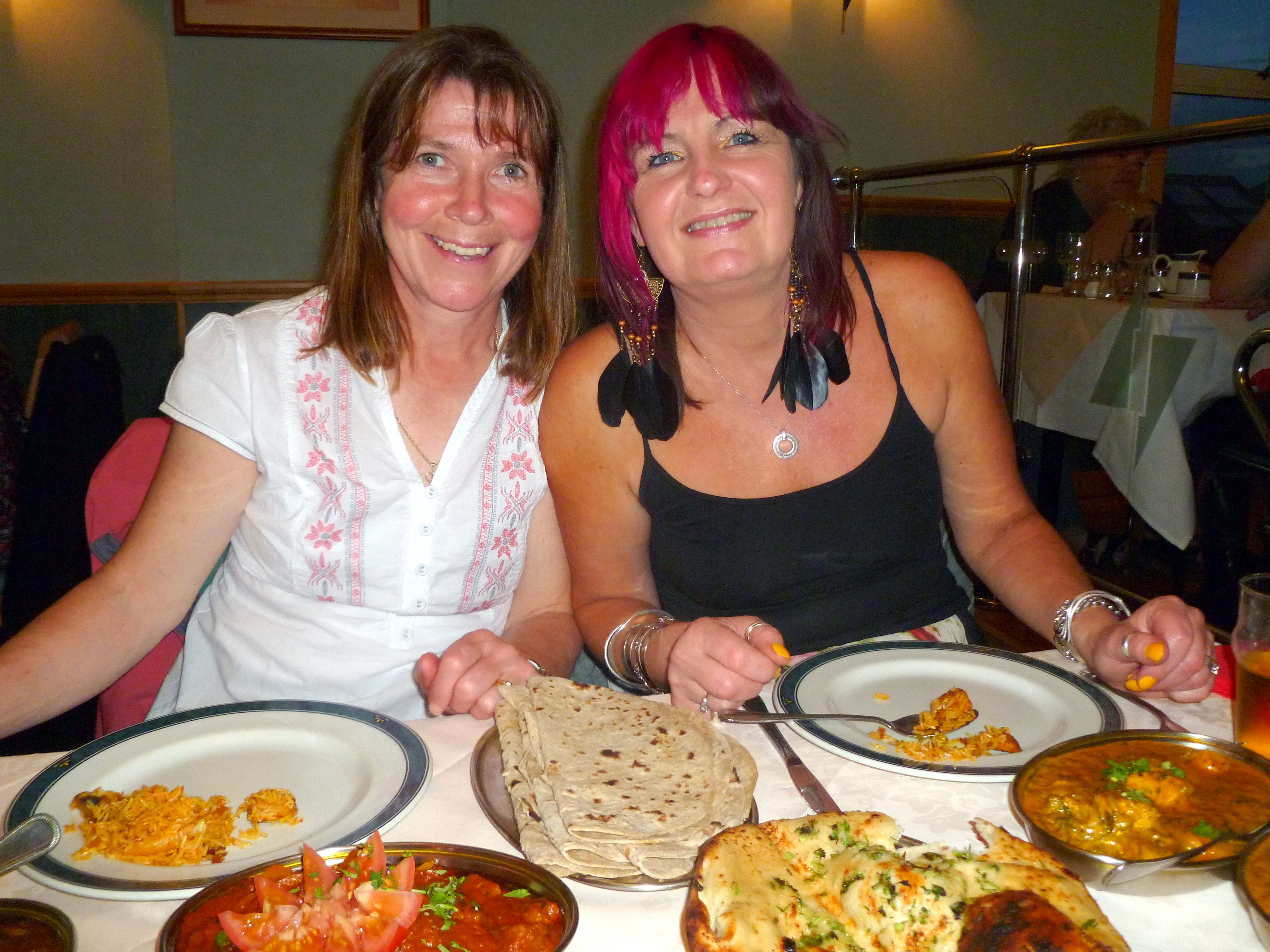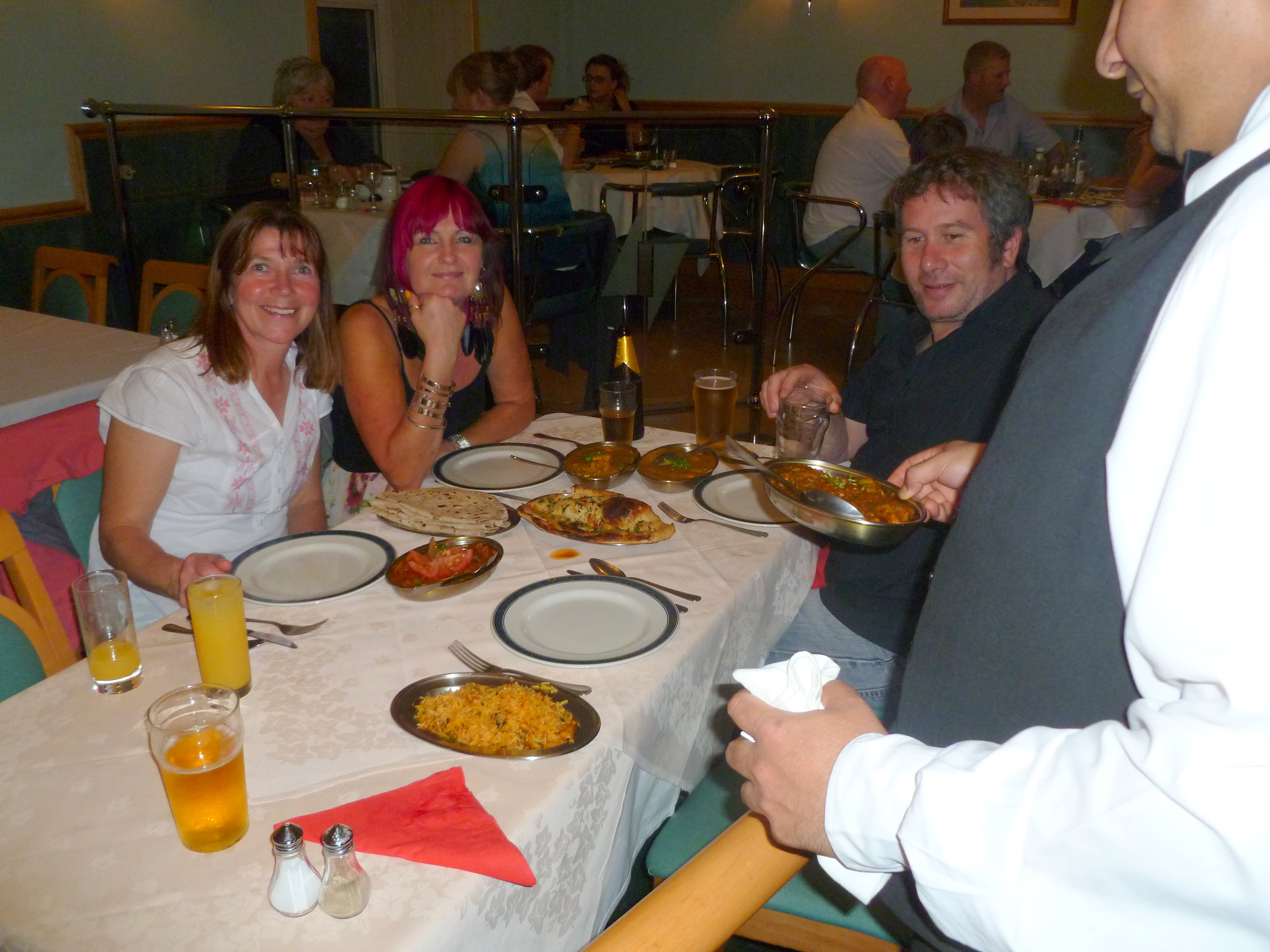 As locals, Alan and Tracy keep up with any changes to the menu. It always looks the same to me. The Akash taste has disappeared in recent years. The Curry here used to be sensational. Well, not actually here, before they moved from their now demolished premises across from the station. What to have? Lamb Bhuna with Spinach (hot) was Hector’s choice. Marg went for Lamb Gulap which Hector has described on previous visits. Alan and Tracy both selected the Chicken (?) Makhini with Spinach. Four Chapattis and a Garlic and Coriander Nan were ordered to accompany my Mushroom Rice. Let the fun commence….