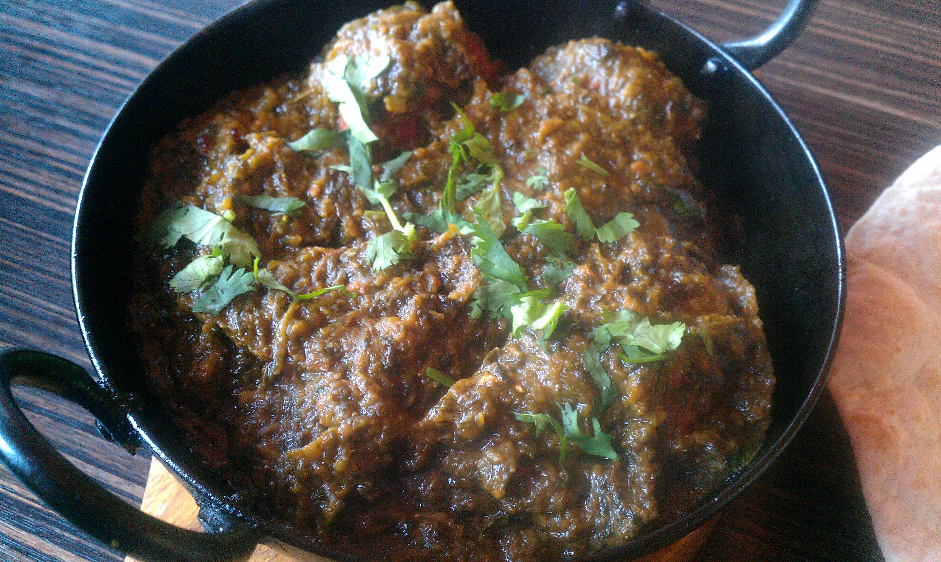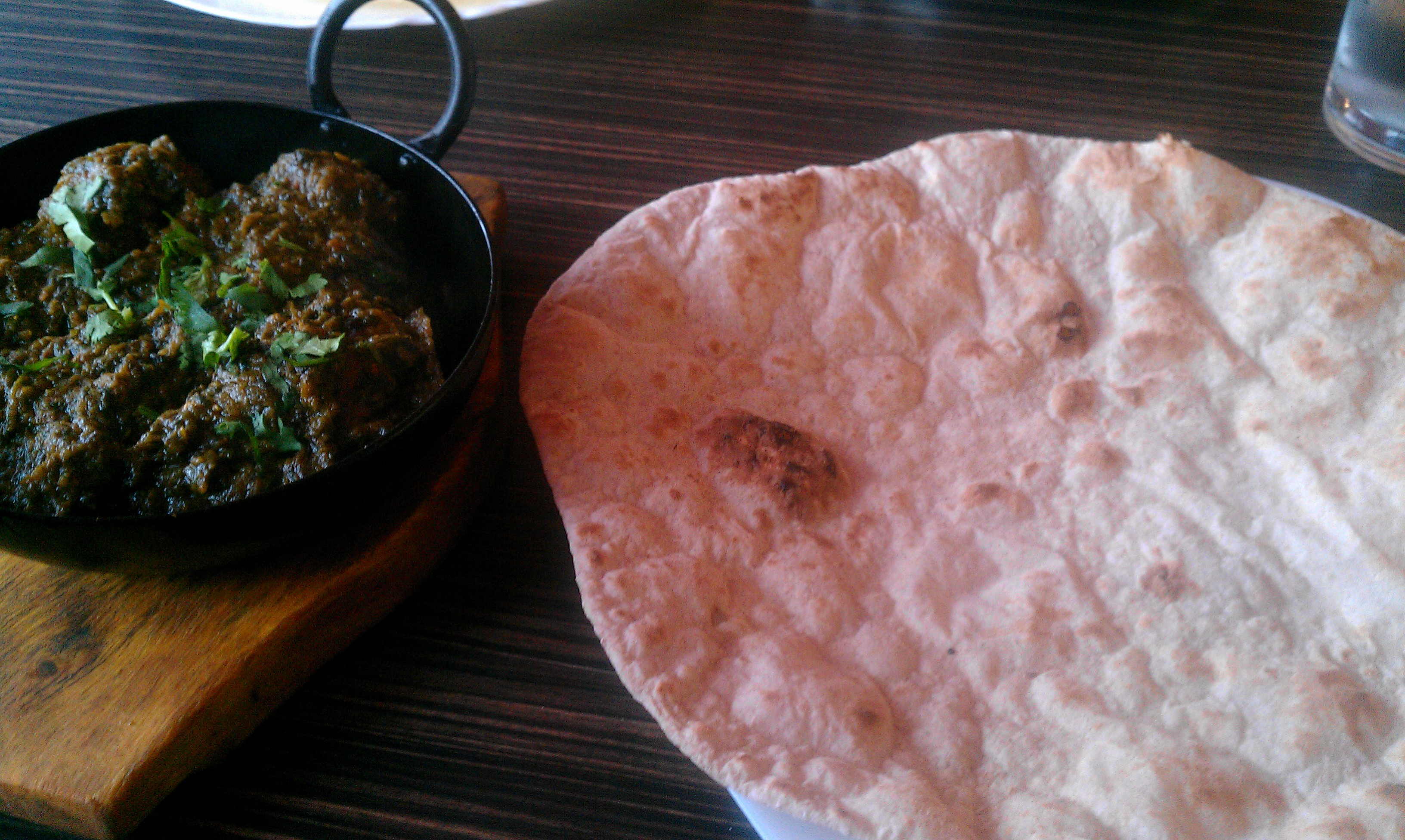 Four large Lamb Meatballs in the thickest Spinach Masala imaginable were presented. Superb. The accompanying Chapatti was just right. Again, Edinburgh readers, please note the generous size and thickness.