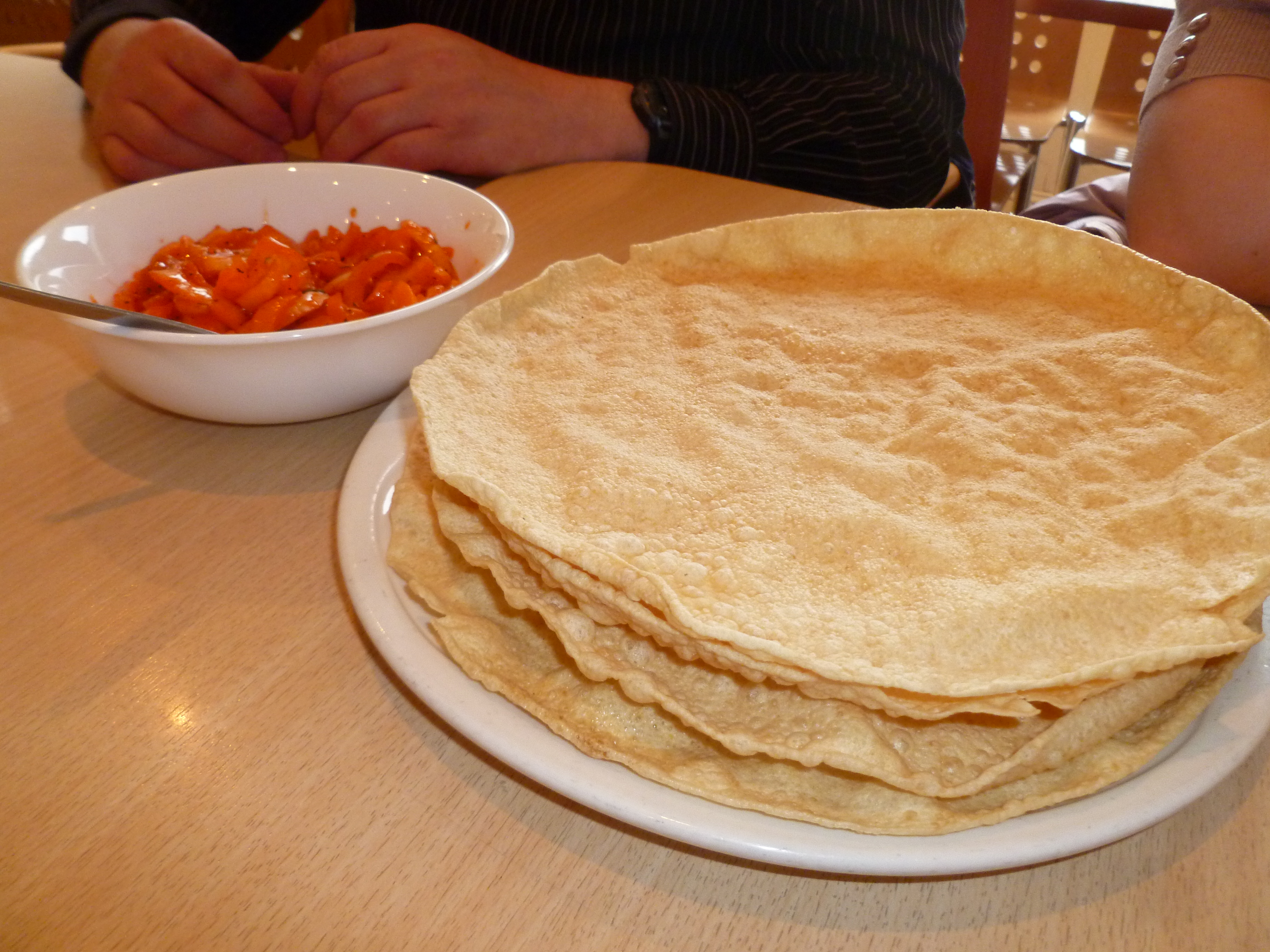 We were munching our way through the last pieces of Poppadoms when the dishes started to appear. With conveyor belt efficiency the various components were set before us. Time for the first dip…