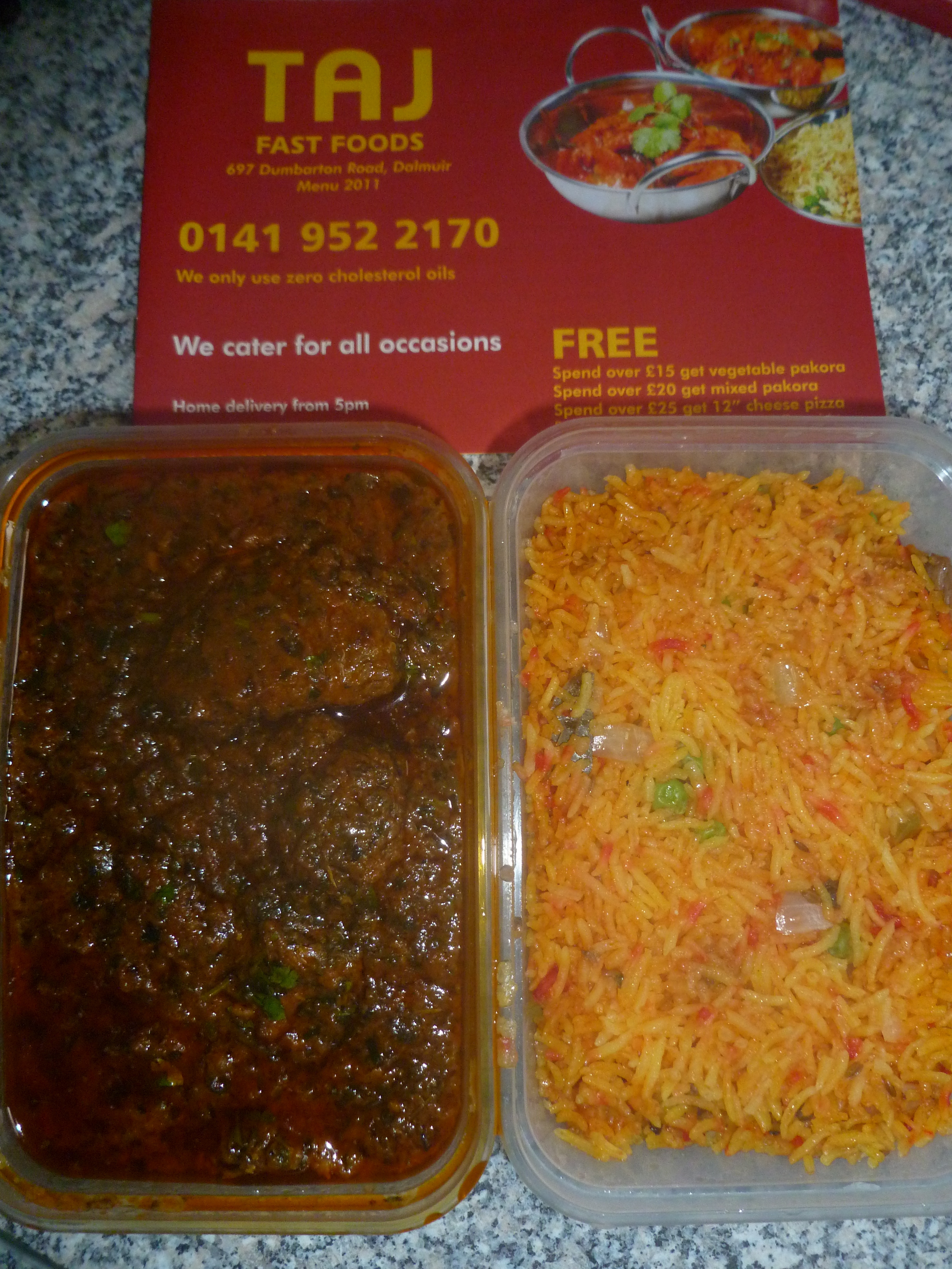 Taj (697 Dumbarton Road, Clydebank, G81 4HD) has been in situ since 1996. Hector did not know this until he was conversing with Mein Host whilst waiting for his Methi Gosht and Special Fried Rice.