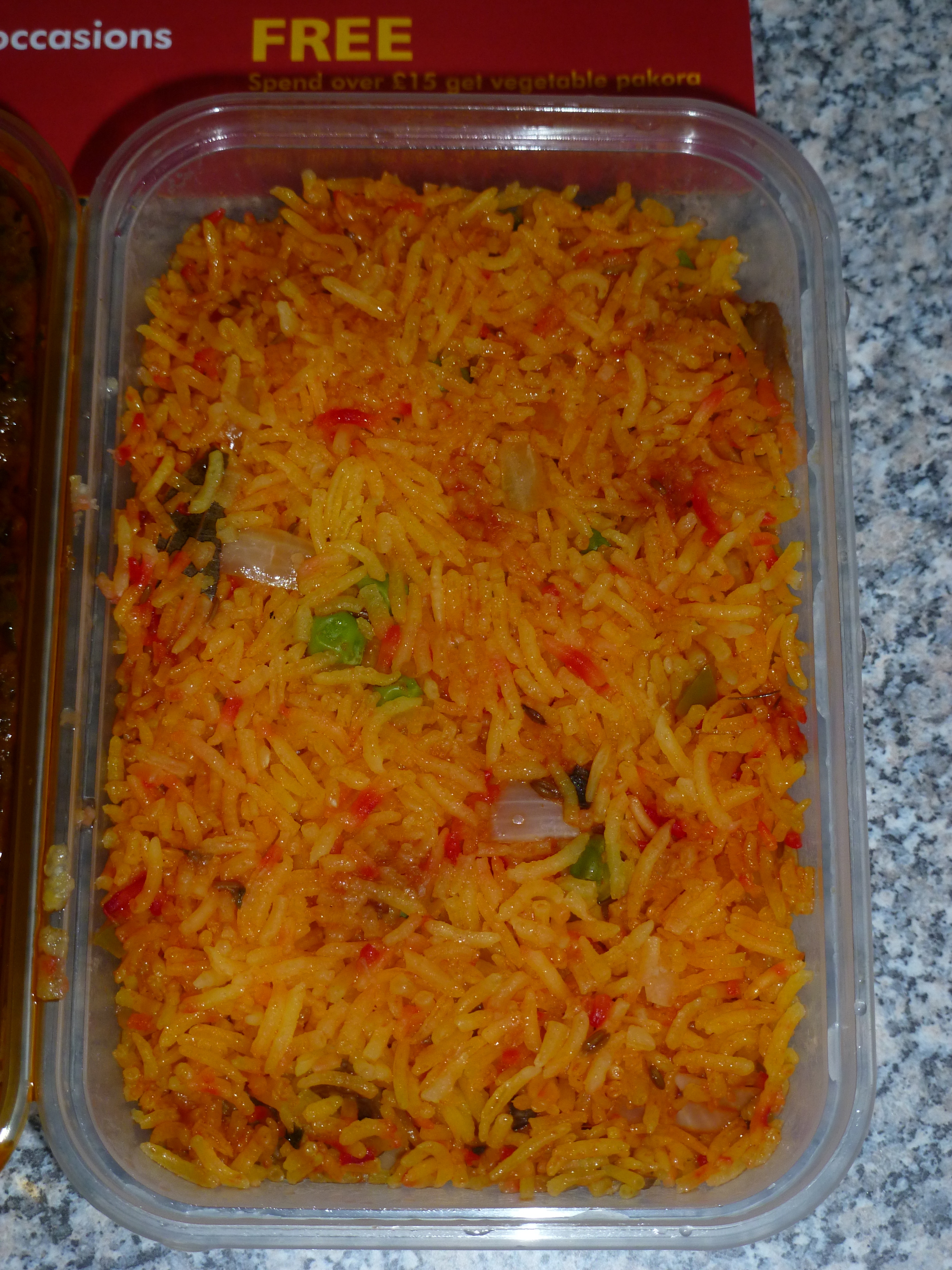 The Rice I was promised would have Mushroom and Peas, the menu also said Onion but nothing about the occasional pieces of Capsicum that fought their way into my container. The portion was ample, well they have to fill the plastic containers, don’t they?