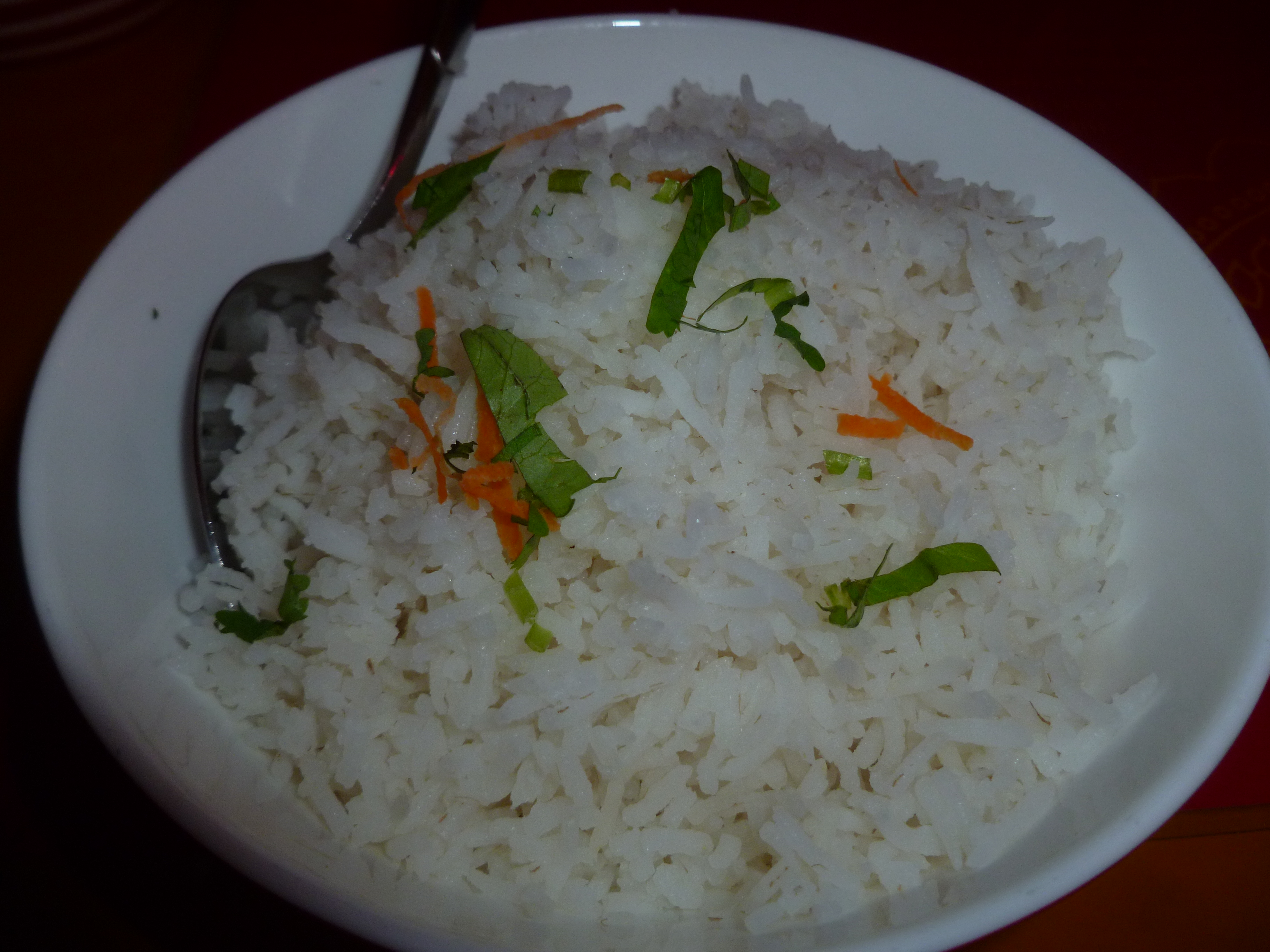 The wait was considerable, were they waiting for the Fish Eggs to hatch? When the dishes finally appeared it was the Rice Bowls which were presented first. This is a departure from our normal Mango experience where Curry and Rice are served on the plate together. The quantities of Rice were copious, indeed we amassed an extra bowl.