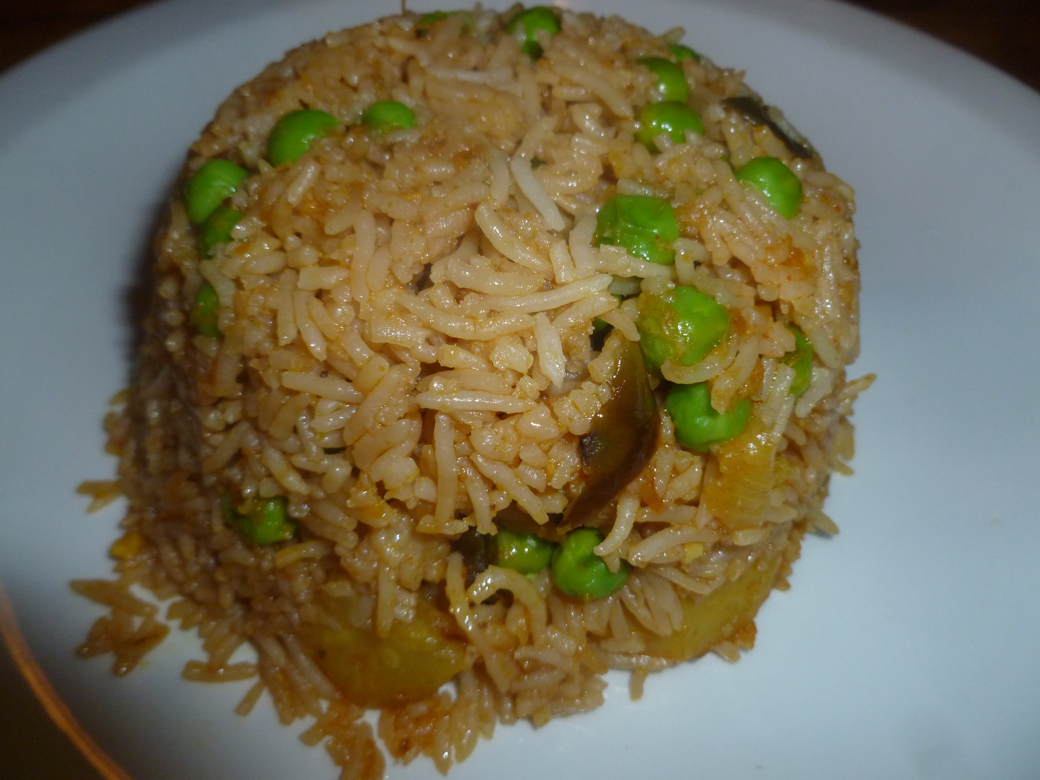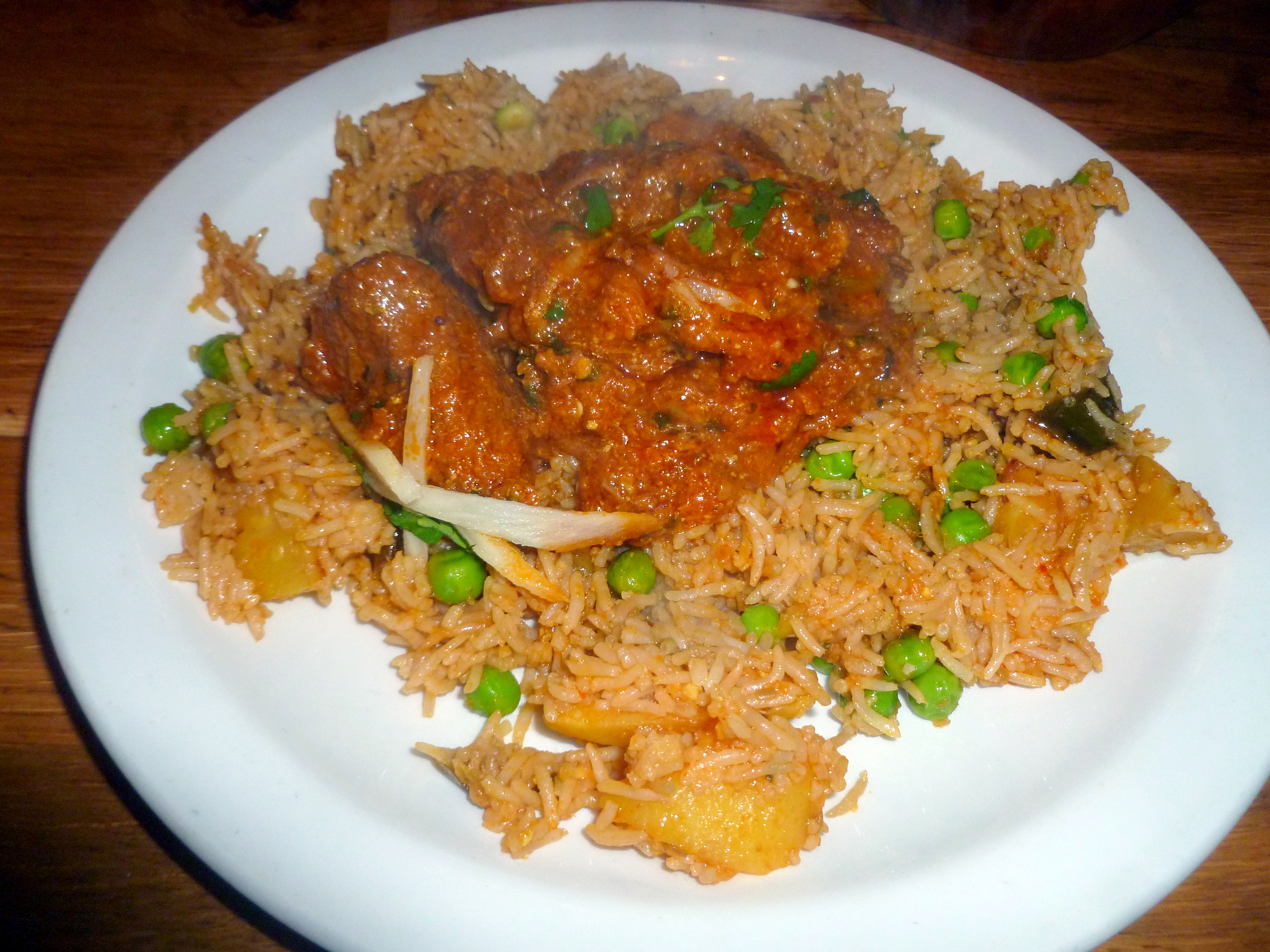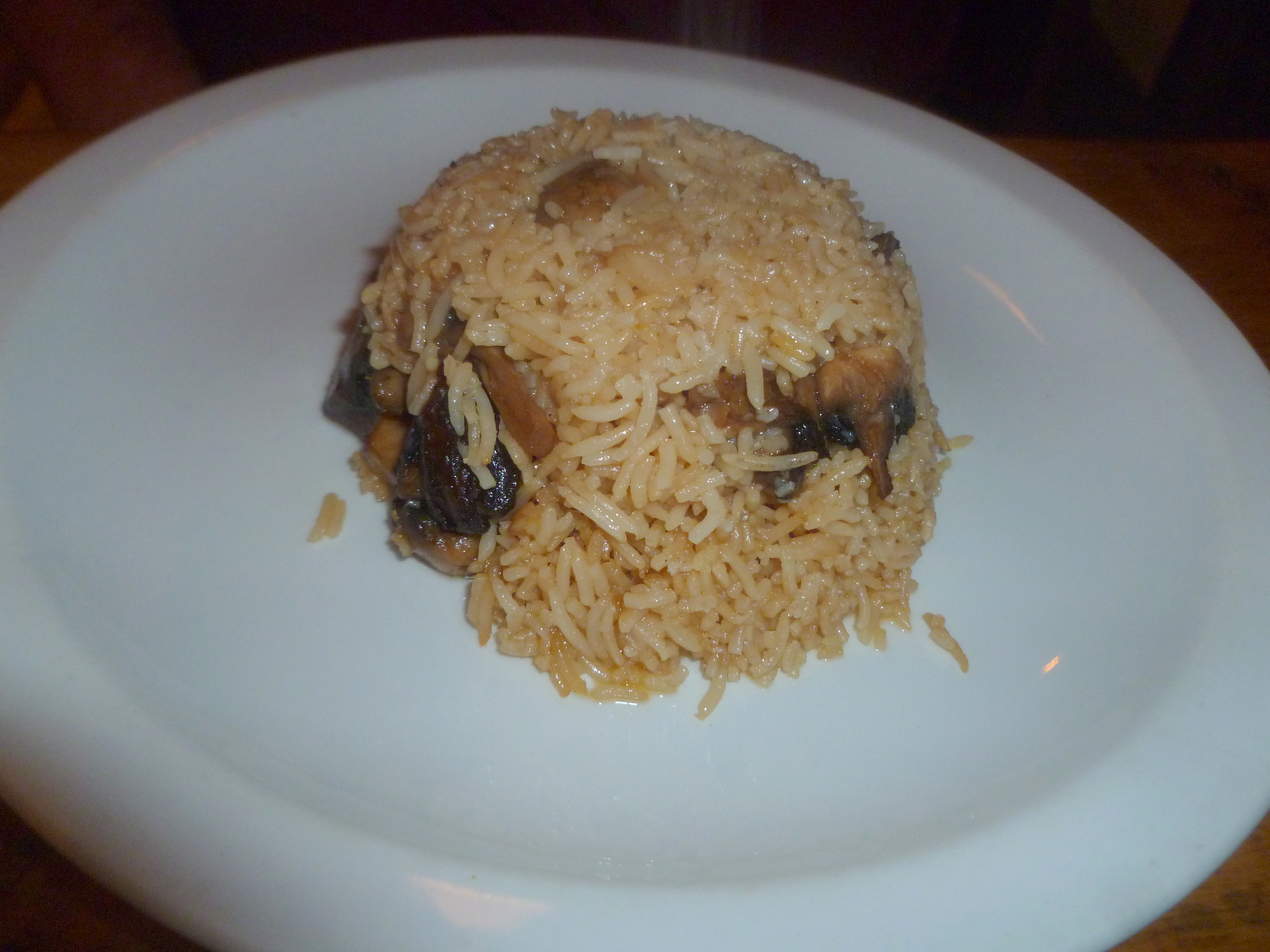 Steve ordered the Lamb Tawa (hot) and Hector the classic Village Lamb Desi Korma (hot). The waiter tried to encourage us to have them on-the-bone, but we know this compromises the meat content of the portion. For Sides the Mushroom Rice and my usual Veggie Rice prevailed.