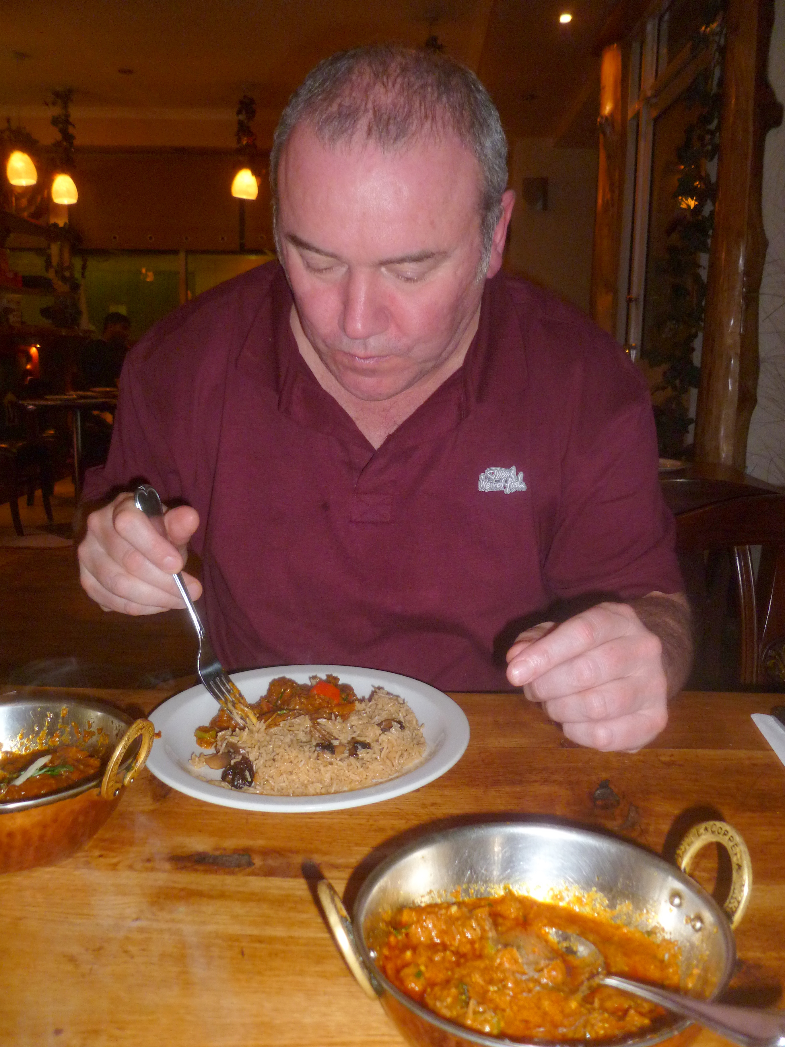 Steve and Hector had to make a dash across to the South Side, so a quick Curry was required on the way home. Both of us were ravenous. Hector has just returned from deepest Perthshire where he was indeed fed, but UK style food..