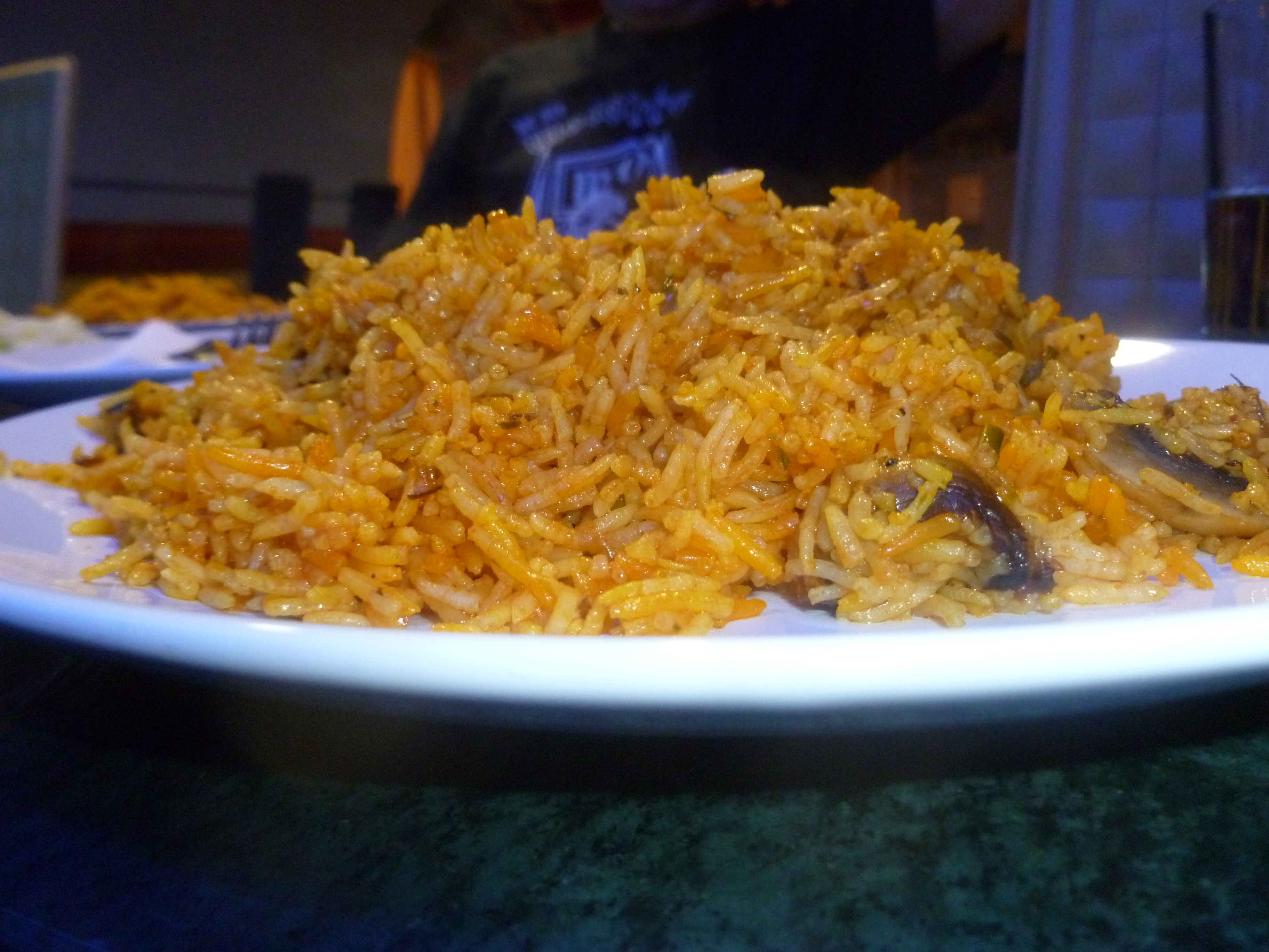 I ordered for the three of us. It was at my insistence that they come here and try this magnificent creation. Mein Host reappeared moments later – the Chef wished to know which version we required – the Handi or the Karahi. Having established on my previous visits that the Karahi is the dry version this was confirmed. Why was there doubt? So three Karahi Karela Gosht (Hot), three Mushroom Rice and three Chapattis it was then.