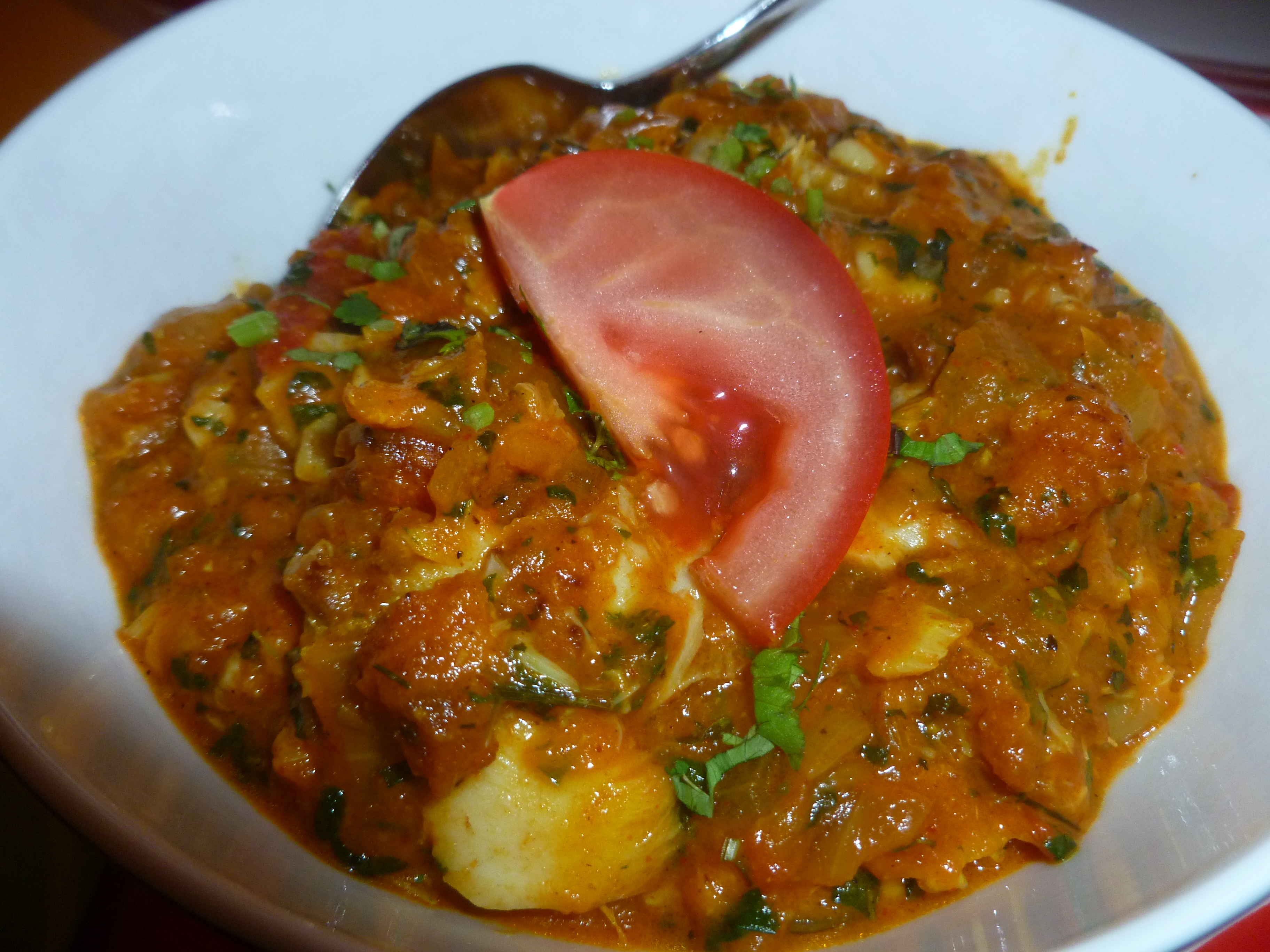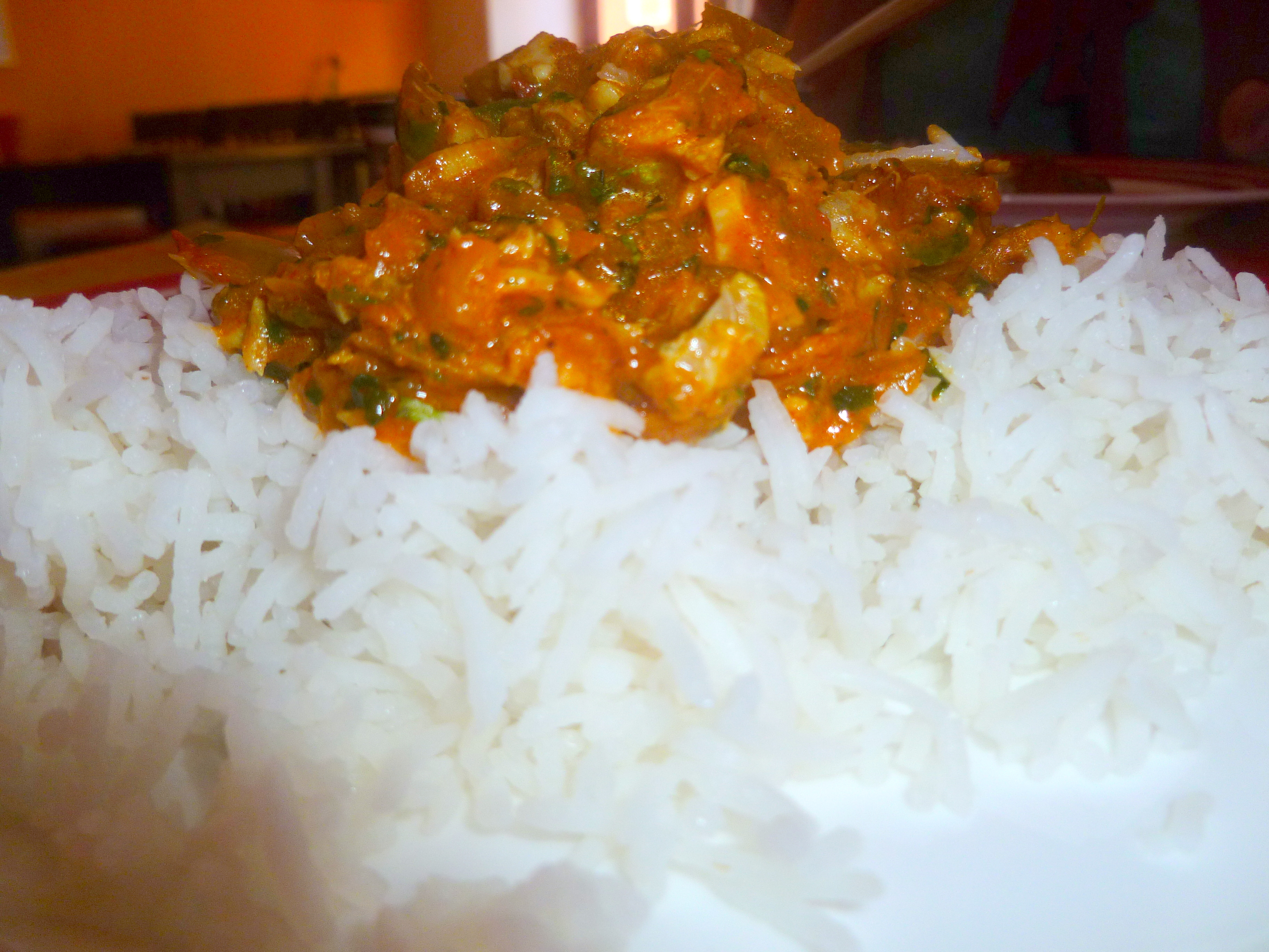 The wait was not a long one. The inclusive Boiled Basmati was brought to the table along with the Curry. Eleanor had suggested that we might share our meals so that she could enjoy the best of both worlds. Hector does not eat this way, if I order a meal I expect to eat all of it.