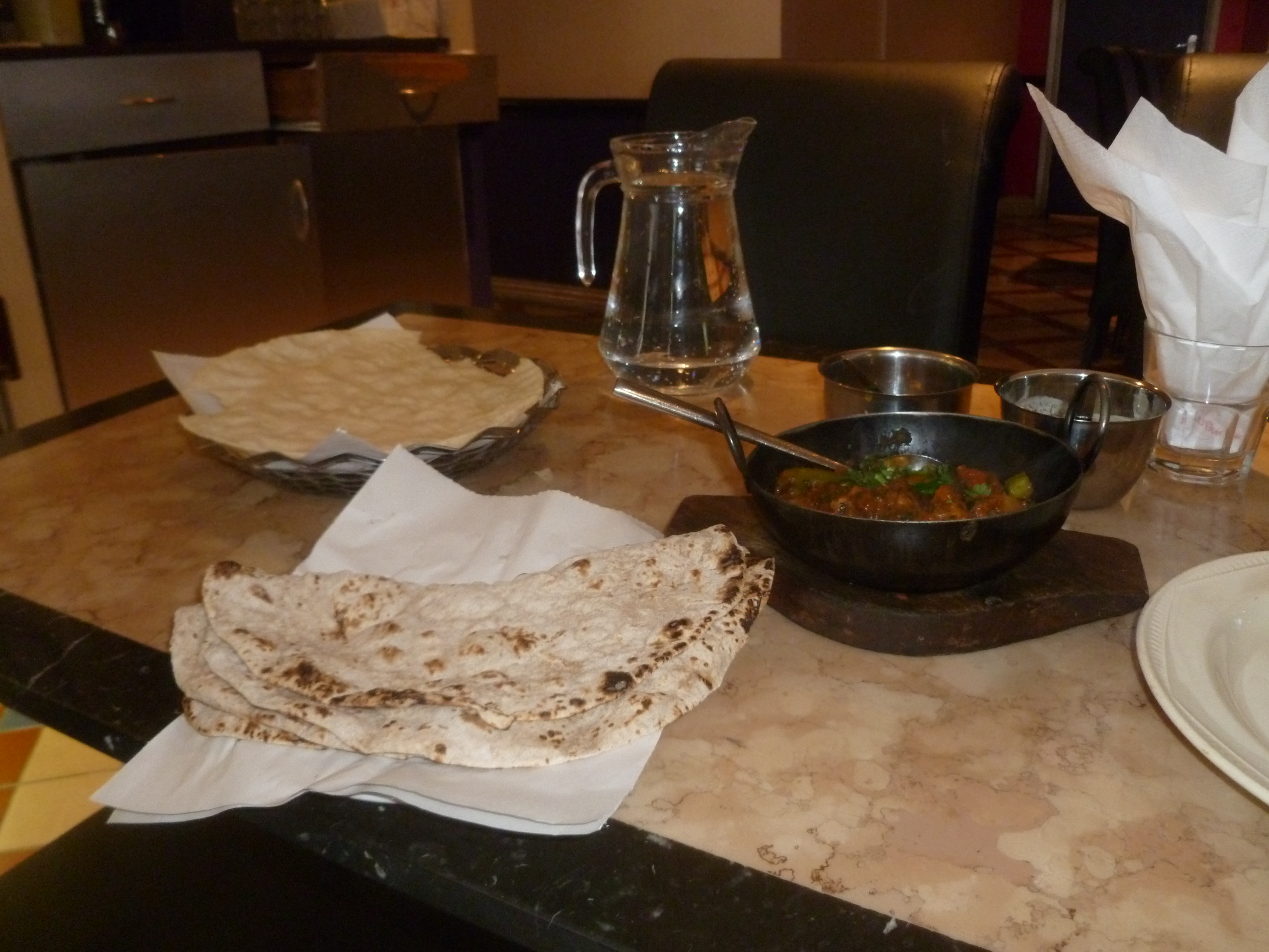 The three Chapattis might prove too much for Hector at this time of day. They were magnificently warm as I tore off a strip and grabbed some Fish. Superb!